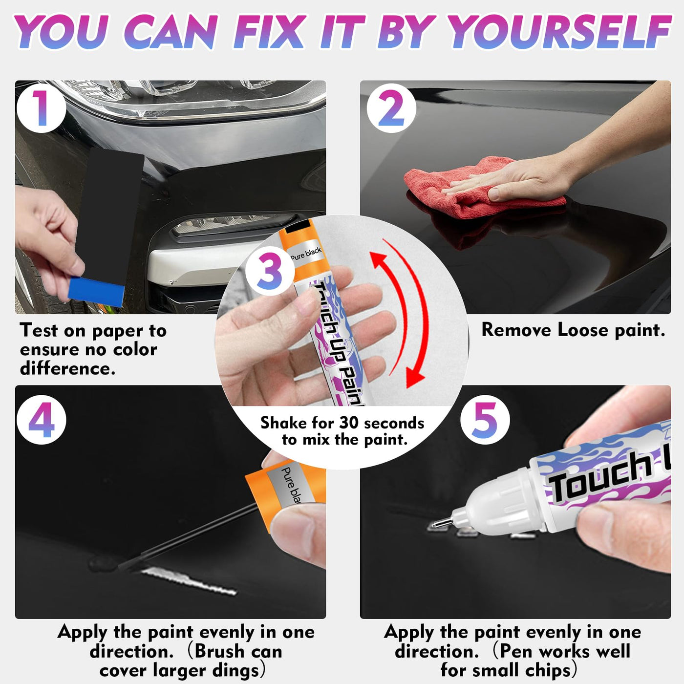 Touch Up Paint for Cars, Car Paint Scratch Repair, Quick & Easy Solution to Erase Scratches, 0.4 fl oz (Silver)