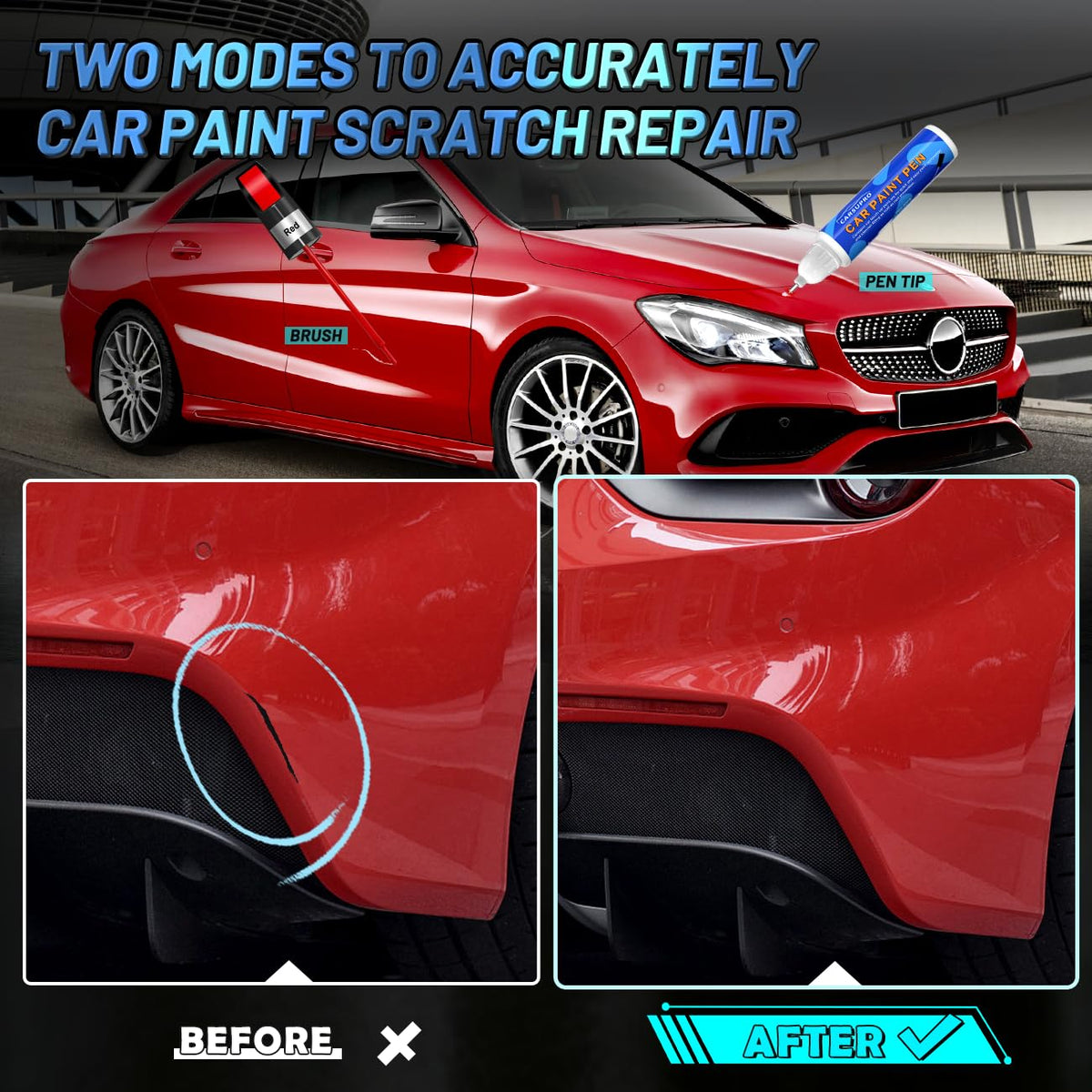 When your car accidentally leaves scratches, Carsupro Red Car Refinish Paint seals the scratches and prevents future rust. You can use the Red car touch up paint pen to stop the inevitable rusting and save time and tons of money instead of going to the body shop Due to the properties of car paint, it needs to be thin and evenly flowing. Patiently apply several coats in one direction to achieve a good repair. Gives some basic protection from corrosion of unprotected metal and cosmetic improvement on scratches Dries fast, and has a clear and gloss to the paint finish, got rid of that dreaded curb rash easily Adheres well, holds up well to hot roads and winter salts, won't fade or peel like regular spray paint Carsupro Red Auto Touch Up Paint is rust prevention, At the same time with the use of varnish pen can be better blended with the paint surface, protect the primer. Carsupro varnish pen brightens and enhances the restoration. Features: Perfect cover up scratches: Red Scratch Repair Automotive color difference between the repaired part and the original car paint is coordinated, and the paint surface is more natural after repair. Dry fast: it only take about 10 minutes (Normal temperature) to dry. 2-in-1 Paint Pen: Two strokes in one head, making it more convenient and accurate to handle scratches. Lasting cover protection Effective stop future rust Economical than repair shop Packing Included: 1*12ml Touch Up Paint for Cars 1*12ml rust prevention varnish pen Method of operation: Step 1: Be sure to shake well before use. Wipe the parts that need to be painted clean, for the condition of the scratch location, a reasonable choice to use the tip of the paint refinishing brush or car paint refinishing brush (people with shaky hands can use tape to protect the surrounding area first, so as not to expand the damage during the construction) Step 2: , brush on a thin layer of paint, wait 2-5 minutes and then apply a second third. Until the new paint is the same height as the old paint. Attention is to wait until a layer of paint is dry before the second layer, otherwise the last layer of paint on the white paint Step 3: Finish. Tear off the surrounding tape. If you have tools, you can use a sanding tool to sand and then tear it off. Step 4: Apply varnish (varnish can also be used separately to enhance the brightness of the paint) For tiny chips we suggest use a toothpick or other tiny paint brush to applied it Warm tips: : No rush, take your time. Test on paper get steady hand and right amount paint If the car paint pen has been opened and the cap was not tightened properly, it can evaporate and dry out. Ensure the cap is tightly closed after use. If you got a leaked or dried touch up paint, we will take our responsibility