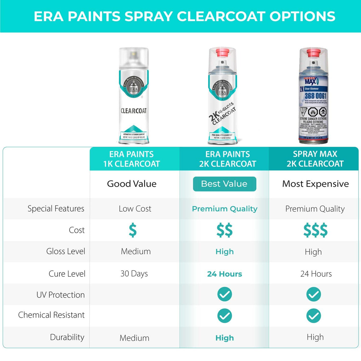Best value 2K clear coat on the market - ERA Paints premium 2K Clear Coat offers superior hardness, easy application and provides a high gloss finish. As good as or better quality than ANY 2K clear coat spray product on the market. PERIOD.