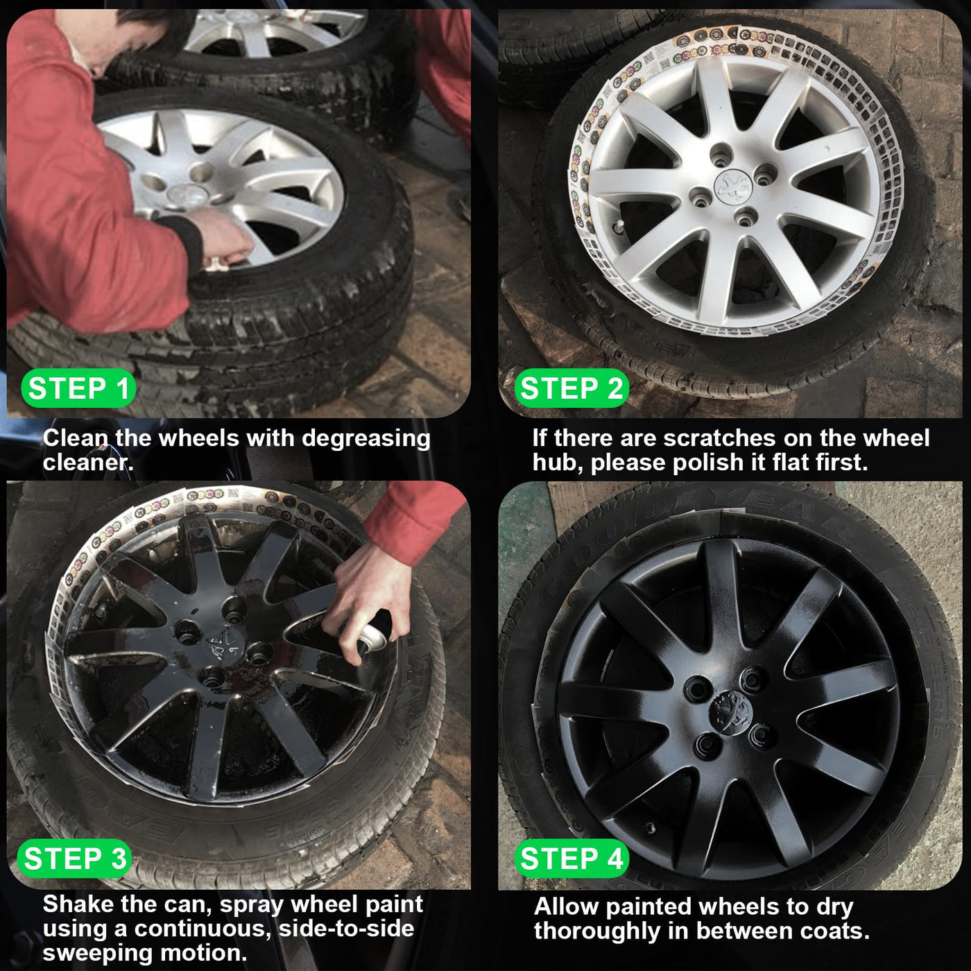 Nadamoo Aluminum Wheel Spray Paint, Aerosol Paint For Car Rim Recolor And Protection Of Metal Surface, Gloss Black, 2 Cans, 13 O