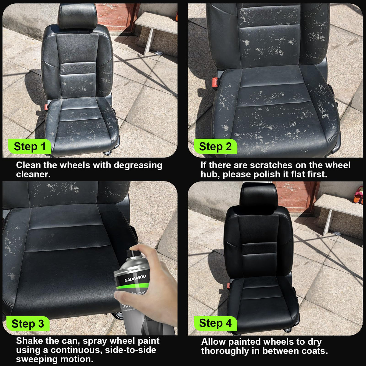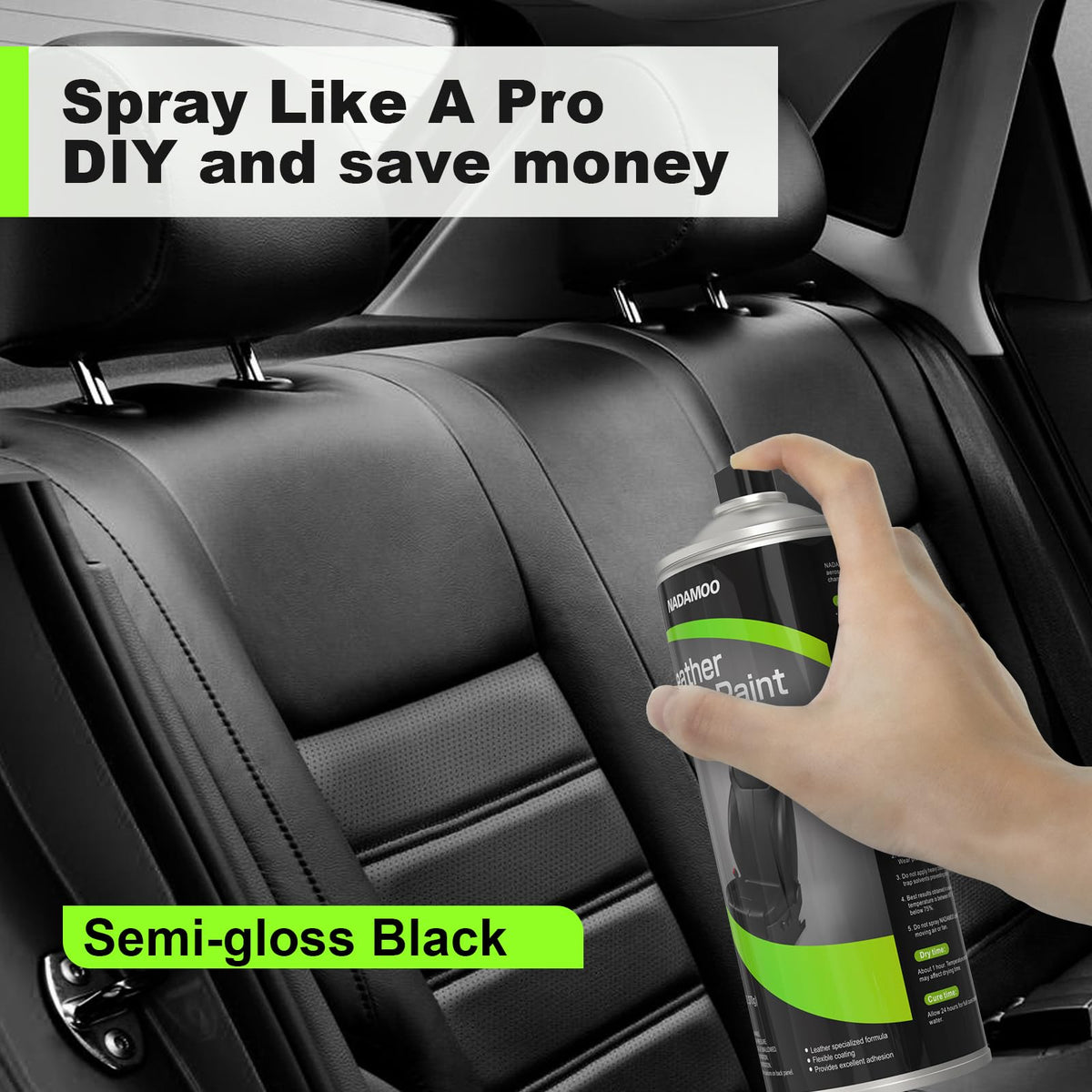 NADAMOO Leather Spray Paint Semi-Gloss Black 2 Cans - Flexible Finish Vinyl Coating for Furniture, Car Seats, Bags, Couches, Sho