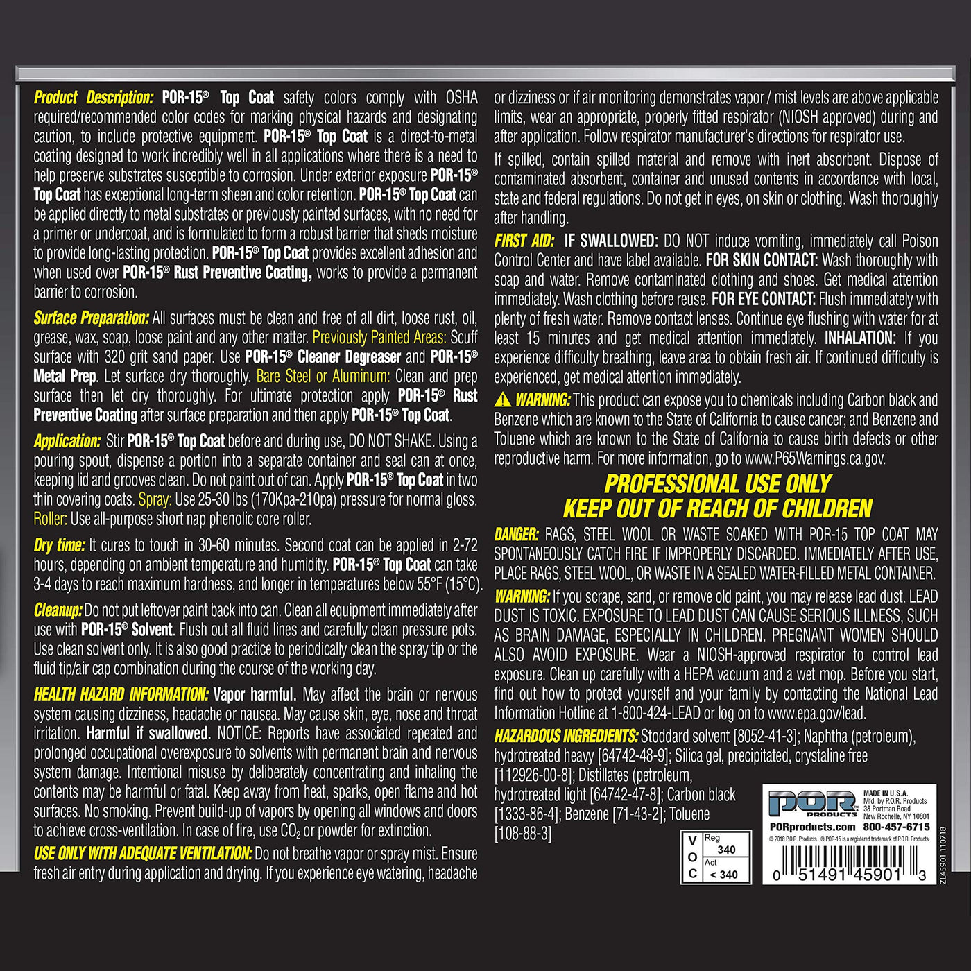 POR-15 Top Coat Paint, Direct to Metal Paint, Long-term Sheen and Color Retention, 1-gallon, Chassis Black