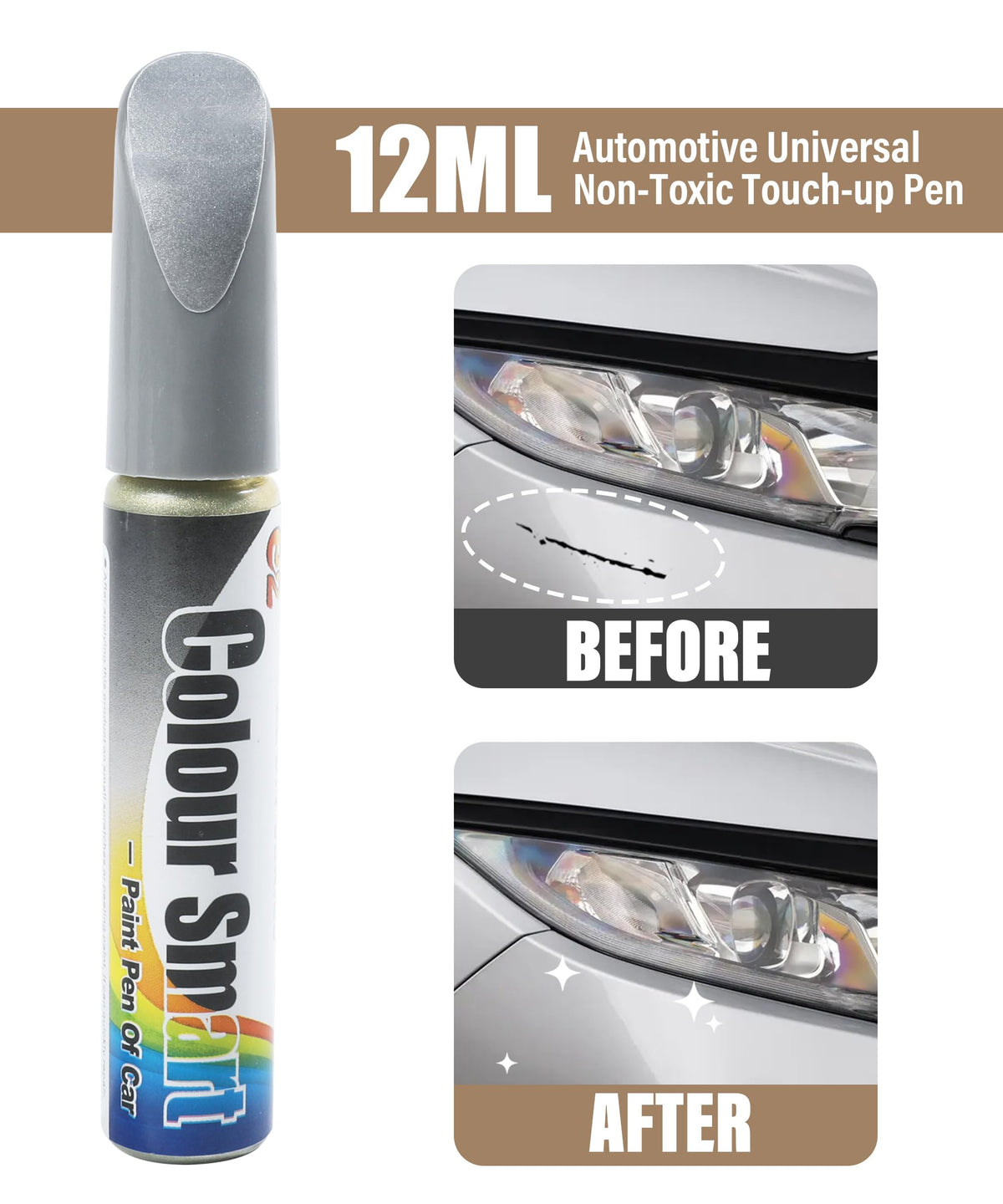 Color: Silver, white, black, gray, blue, red, brown, champagne gold< br > < br > What will you get in the box?< br > -1 * Car scratch paint pen< br > < br > Our product advantages< br > -Can save you a lot of money to repair small scratches, portable and easy to use< br > -Excellent design can be used for removing coatings and repairing car scratches. Permanent waterproofing< br > -Specially formulated, waterproof and sun proof, sturdy and non peeling< br > -There is no color difference between the repaired area and the original paint under natural light, which is harmonious and natural, and no repair marks can be seen< br > -We offer a variety of color car paint brushes for you to choose from and purchase, which are suitable for most brands of cars< br > -It is a must-have for car enthusiasts and drivers to quickly and easily repair scratches on cars and restore their appearance< br >