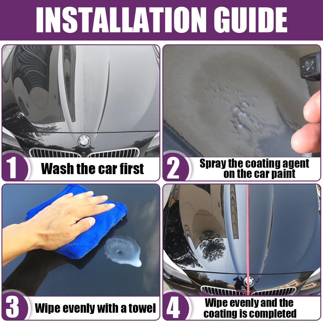 Specification: Name:Car coating spray Weight: 110g Capacity: 100ml Color:As shown Feature: Instant Water Repellency Enhanced Gloss Finish Long-Lasting UV Protection Easy Application, No Tools Required Package Dimensions:2.87*1.65*6.69 inches Packing list: 1/2pcs *Car coating spray 1/2pcs * Towel 1/2pcs * Sponge Notes: 1.Please allow slight measurement deviations due to manual measurement 2.Due to the different monitor and light effects, the actual color of the item might be slightly different from the color shown in the pictures