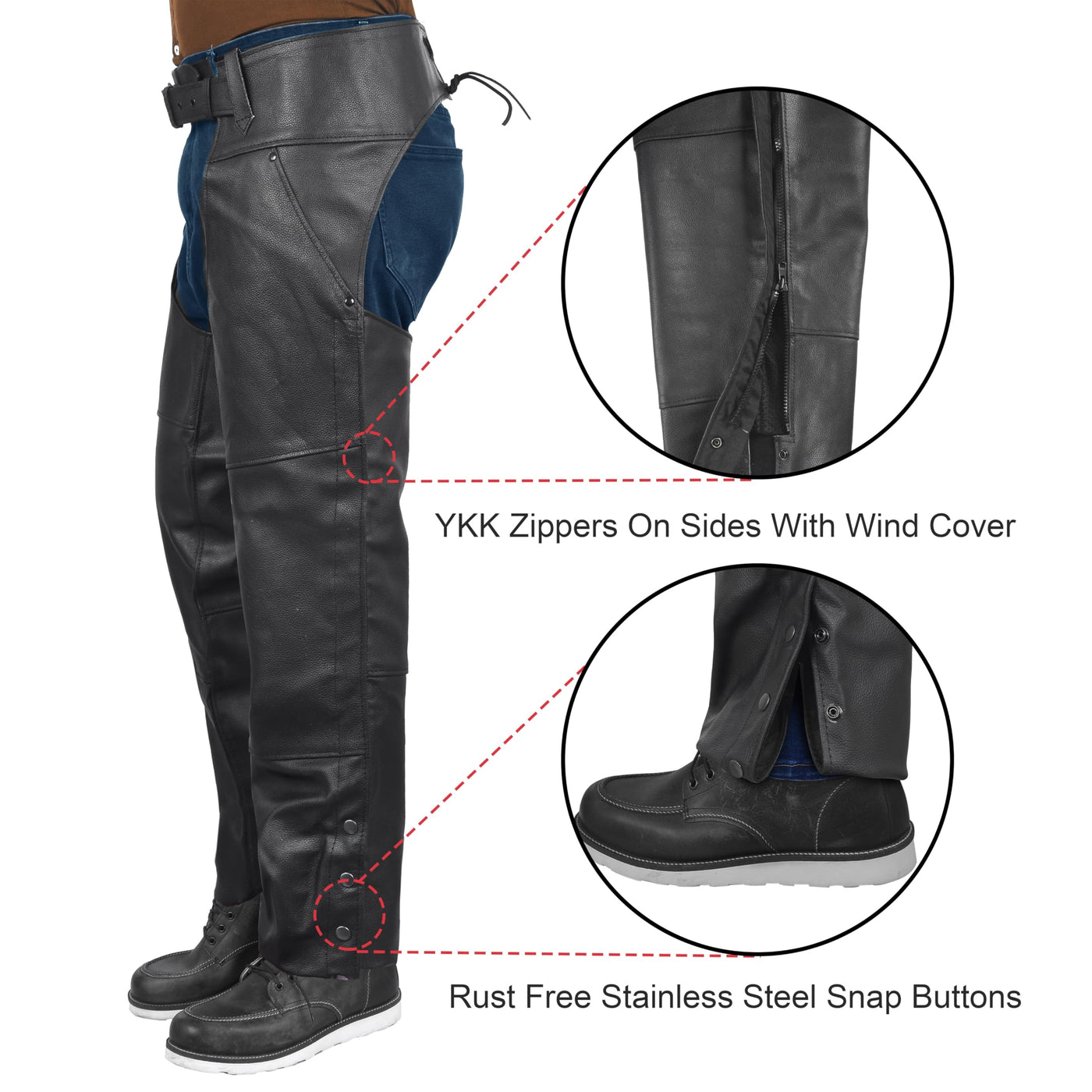 BYKR Leather Motorcycle Chaps for Men & Women Overpants Cowboy Riding Biker Vintage Chap Pants Adjustable Waist & Length (Black,