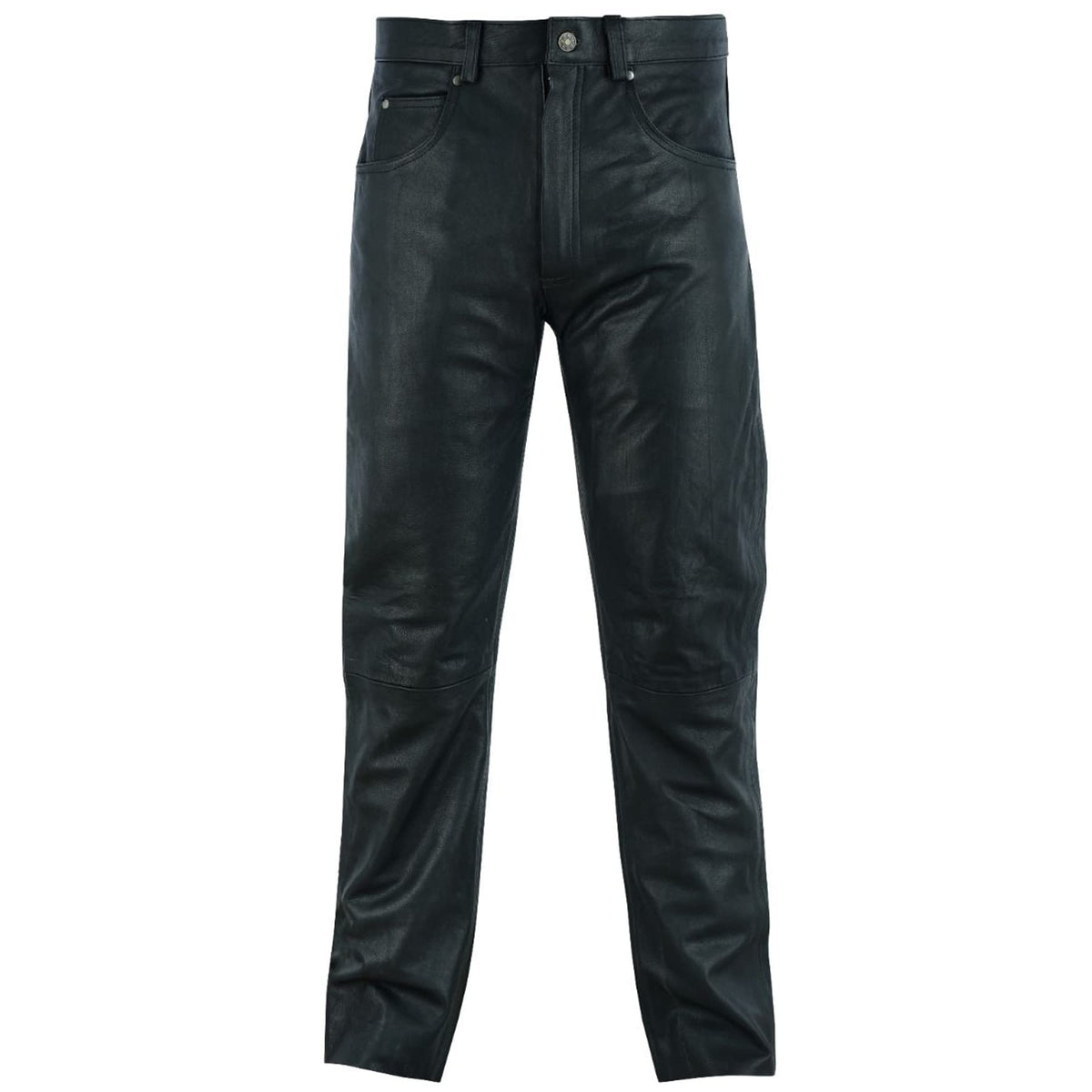 Dream Apparel Mens Motorcycle Black Leather Pants Jeans Style Motorcycle Riding Pants for Biker with 5 Pockets (Size 34)