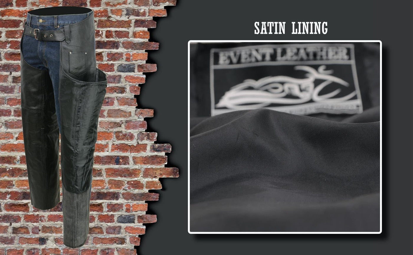 Event Leather EL1117BO Men's Black Classic Leather Chaps with Coin Pocket