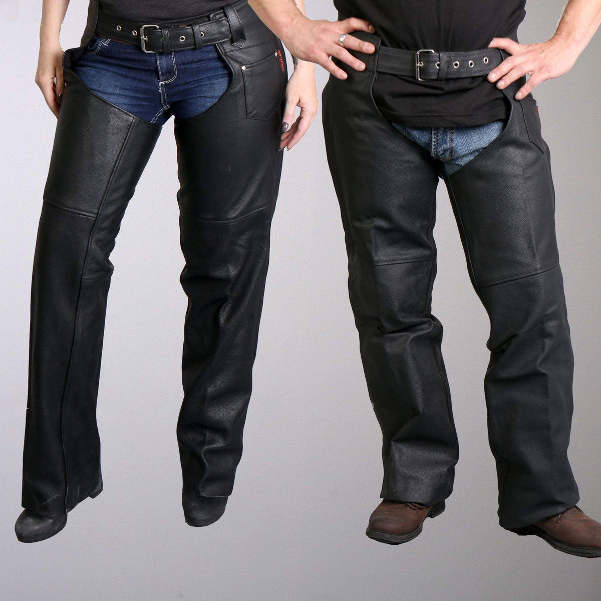 Hot Leathers Chm1001 Best Selling Black Fully Lined Unisex Leather Chaps Features Made Of Heavyweight 100 % Genuine Leather Adjustable Belt Design 1 Outside Small Pocket Unisex Snap And Zipper Closure Heavyweight Leather Fully Lined Silver Hardware Unhemmed So You Can Cut To Your Liking