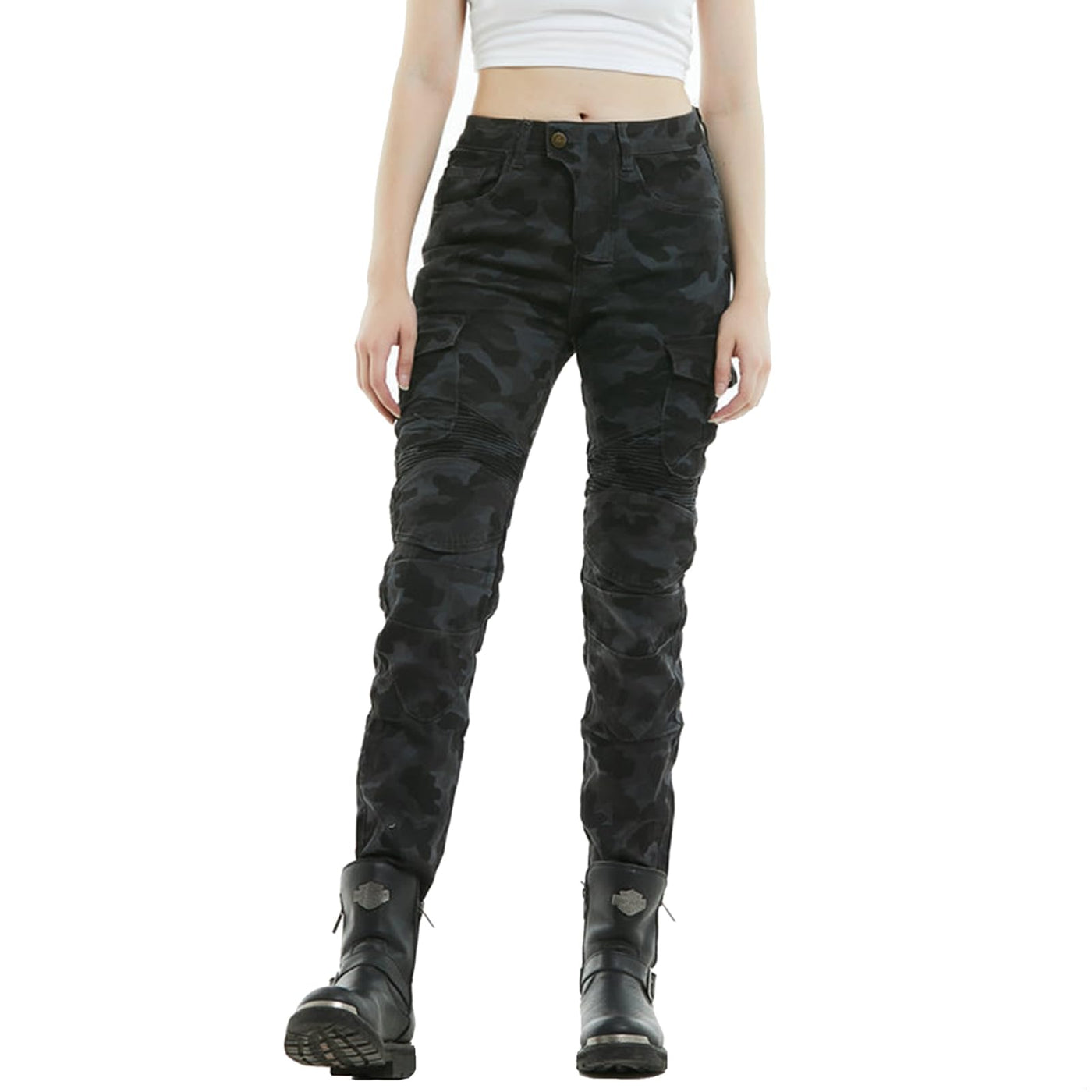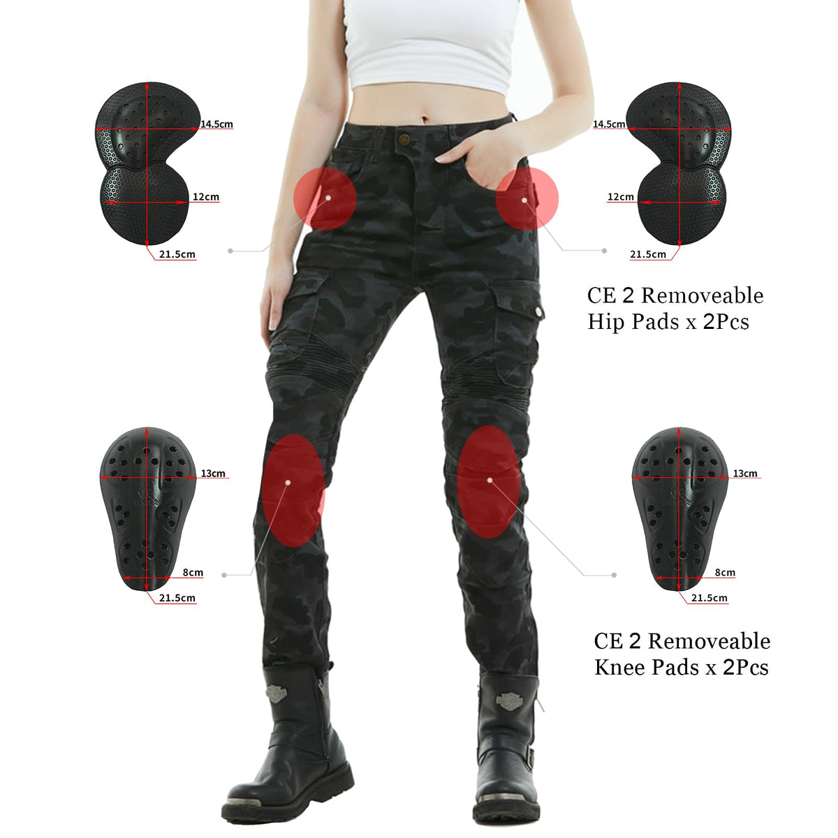 LOMENG Motorcycle Riding Jeans Motorbike Motocross Slim Stretch Pants with CE Knee Hip Removable Armored for Women Item information: Material : Cotton Color : Camouflage green, Camouflage Blue,Blue, Black Size information: XXS = Waist28.34inch , Hip34.65inch , Thigh18.90inch , Length40.16inch,Calf15.81inch XS = Waist29.92inch , Hip37inch , Thigh19.69inch , Length40.55inch,Calf15.97inch S = Waist31.49inch , Hip39.37inch , Thigh20.97inch , Length41.34inch,Calf16.28inch M = Waist33.46inch , Hip40.94inch , Thigh22.04inch , Length41.73inch,Calf16.43inch L = Waist35.43inch , Hip42.52inch , Thigh23.23inch , Length42.13inch,Calf16.59inch Please see the sizing chart for details. Why you choose LOMENG motorcycle jeans? 1.Great value for money,durable,durable and sturdy. 2.You will receive a pair of waist and knee pads for free. 3.Breathable & Soft Denim Fabric Carefully selected for ensuring comfort while riding. 4.Motorcycle cycling pants come in various colors to choose from, which are fashionable, comfortable, and elastic. Note: 1.The dimension shall be measured in a flat state. Please understand the error of 1-2cm. 2.According to different monitors, the feeling of real objects, colors and materials may be different. Please understand. 3.This product is indigo dyeing product. In terms of characteristics, it will fade due to moisture, sweat, friction, etc. Please do not wash with other things. 4.Please use washing powder without bleach and fluorescent brightener. Please avoid prolonged immersion in water. Please do not dry the glass.