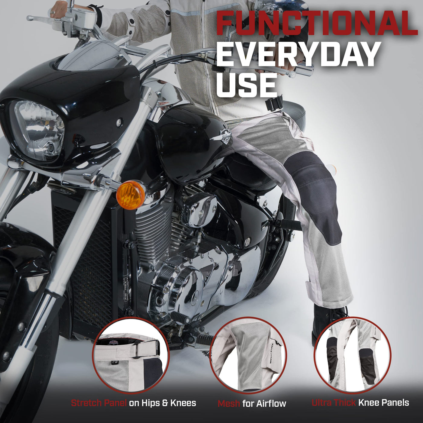 WICKED STOCK Mesh Motorcycle Pants - Motocross Pants with Armor - CE LEVEL2 - Dirt Bike Grey Black
