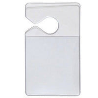 Now Available in a Five Pack for a Better Value! Clear rigid vinyl vertical hang tag holder by Specialist ID can easily be attached to a vehicles rear view mirror to store a parking pass ticket in a clear and visible location. A handy item for those of you that have to display your ID badge in parking lots either at work or home, and want to keep your badge protected and long lasting. This Parking Pass holder fits any credential or pass that is 3 1/8'' High X 2 3/4'' Wide. Clear rigid plastic prevents card from bending.