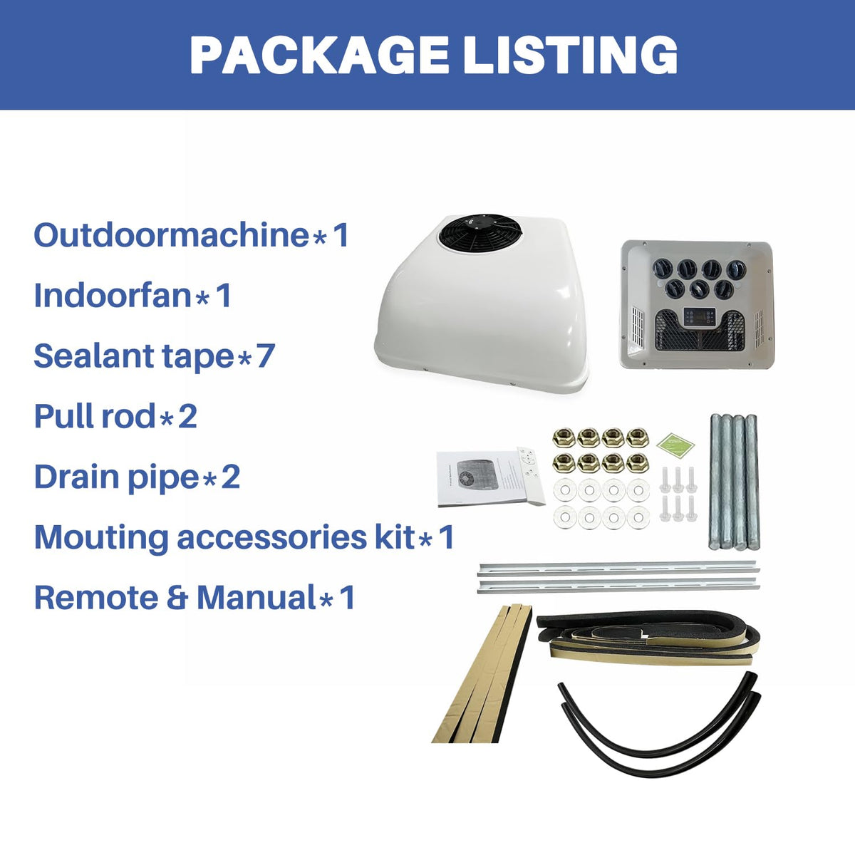 Product Parameter: Cooling Air Volume Is About 2200W(8800Btu) Power Consumption: 600-800W Rated Current 50-60A Rated Voltage: 12V Host Size: 680*620*200 Mm(26.7*24.4*7.9Inch) Refrigerant:R134A 600G Product Weight:27Kg(59.5Pound) The Roof Opening Size Need To Be Larger Than 310 * 165Mm(12.20*6.5Inch) And Smaller Than 490 * 585Mm(19.29*23.03Inch) (The Vehicle Without A Sunroof Can Be Installed After Opening The Window According To The Size)