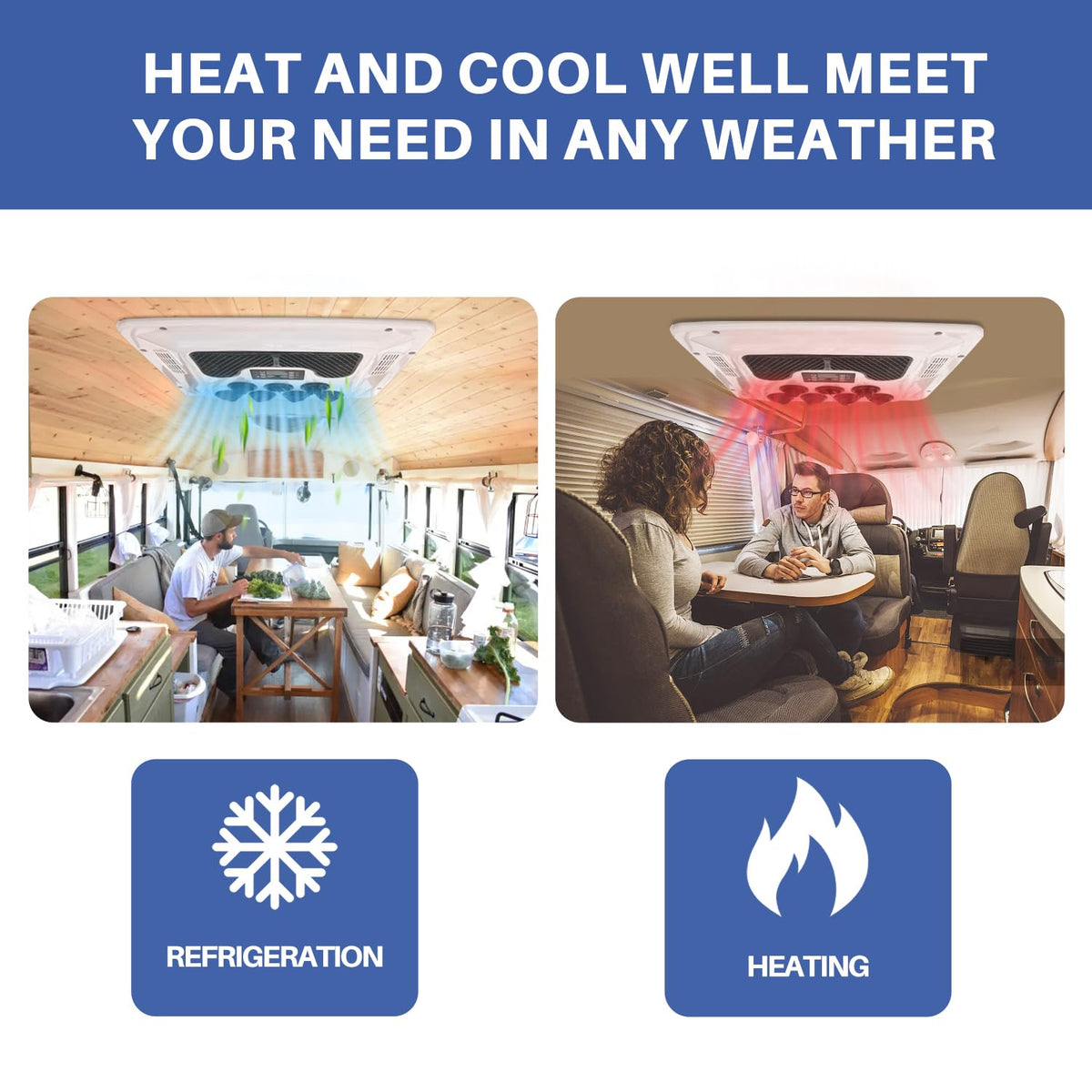 Aspligo 12 Volt Dc Air Conditioner Electric Parking Rooftop Rv Air Conditioner 8800Btu 12V Ac Unit For Motorhome Semi Truck Trailer Camper Van Heating And Cooling