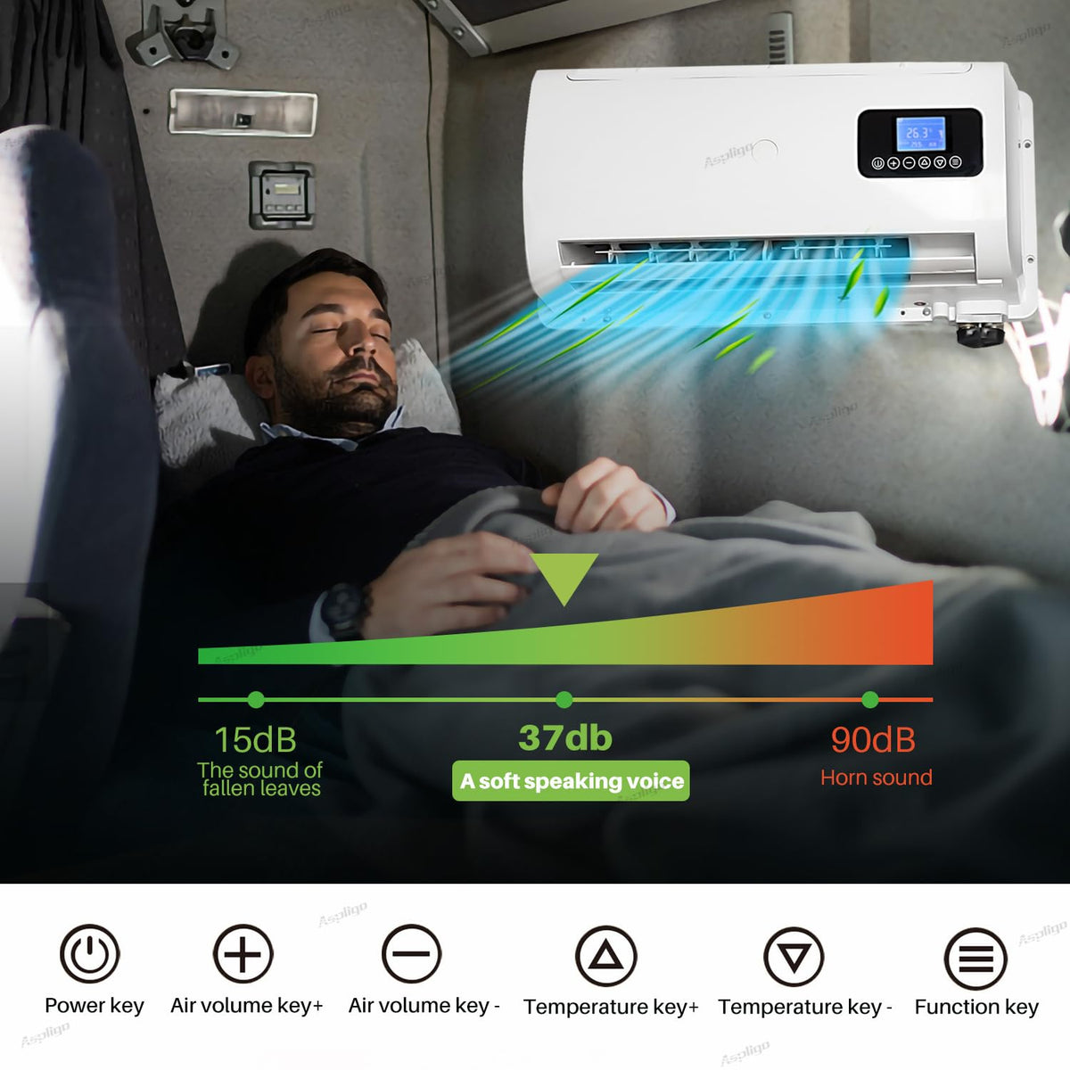 Aspligo 12V Dc Air Conditioner Electric Split Parking Truck Air Conditioning Ac Unit For Tractor Bus Boat Camper Van Motorhome Rv Trailer Excavator Crane 6800-10500Btu Fast Cooling Low Noise