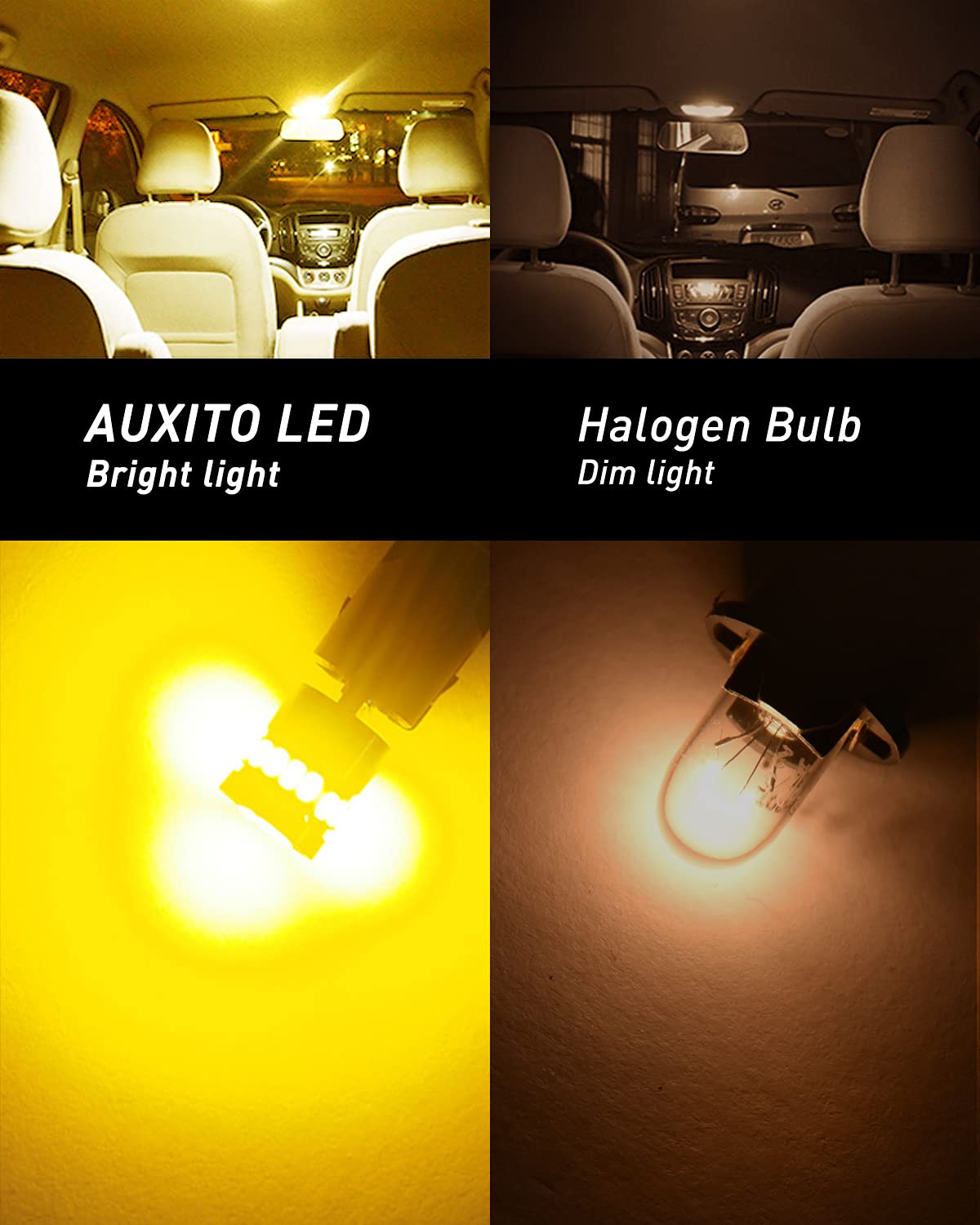 Q: How bright are the AUXITO 194 LED Light bulbs?A: Each AUXITO 194 LED bulb emits 240 lumens, providing a super bright amber yellow light that enhances visibility and gives your car a refreshed new look.