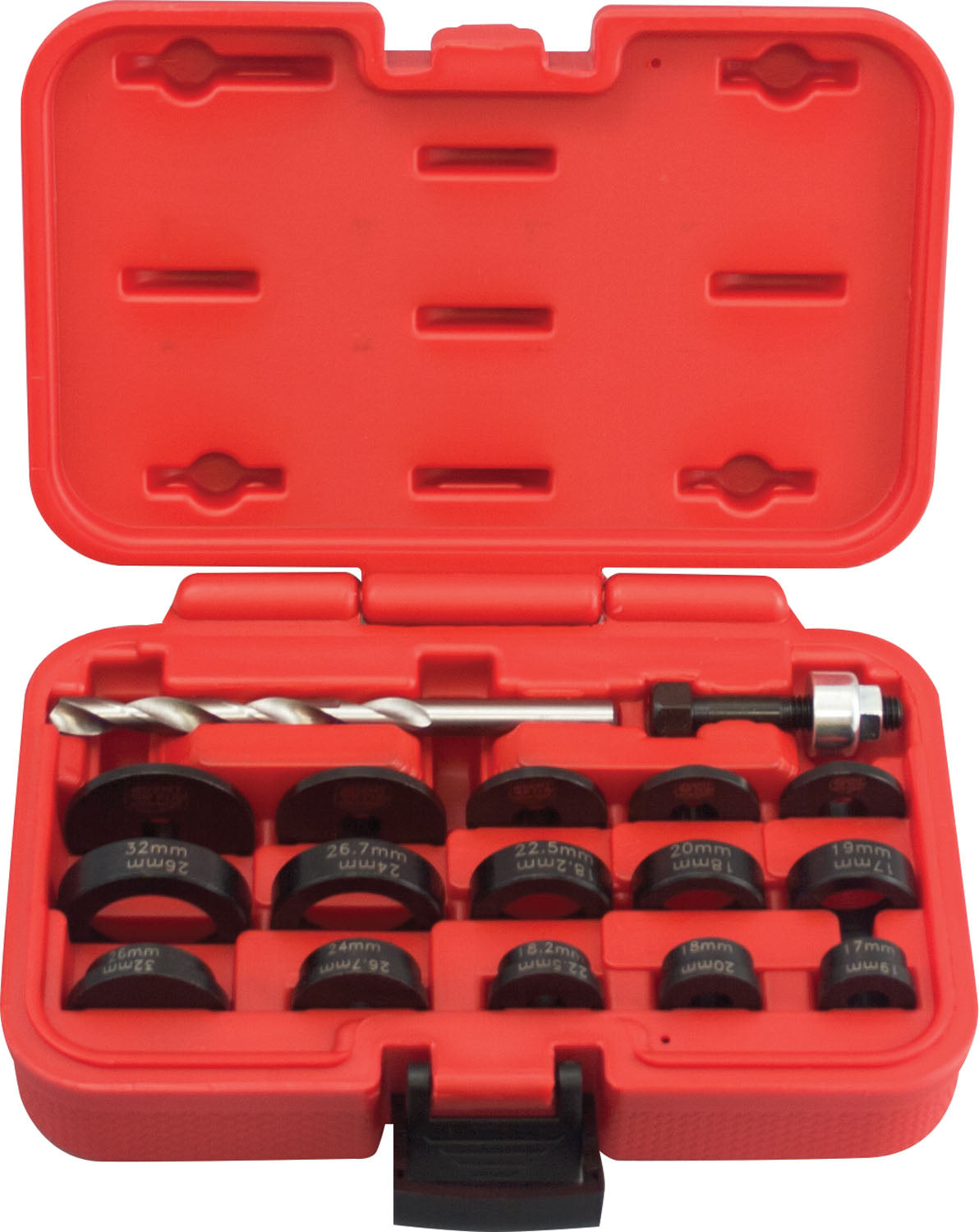 features & benefits: these parking sensor and lens hole maker is the precise and clean way to create holes in order to install driver assist sensors on replacement bumpers. easy to use with a wide variety of sizes make this tool a must have for any shop. hole sizes: 17mm, 18mm, 18.2mm, 19mm, 20mm, 22.5mm, 24mm, 26mm, 26.7mm, & 32mm cut clean through the bumper stack the discs