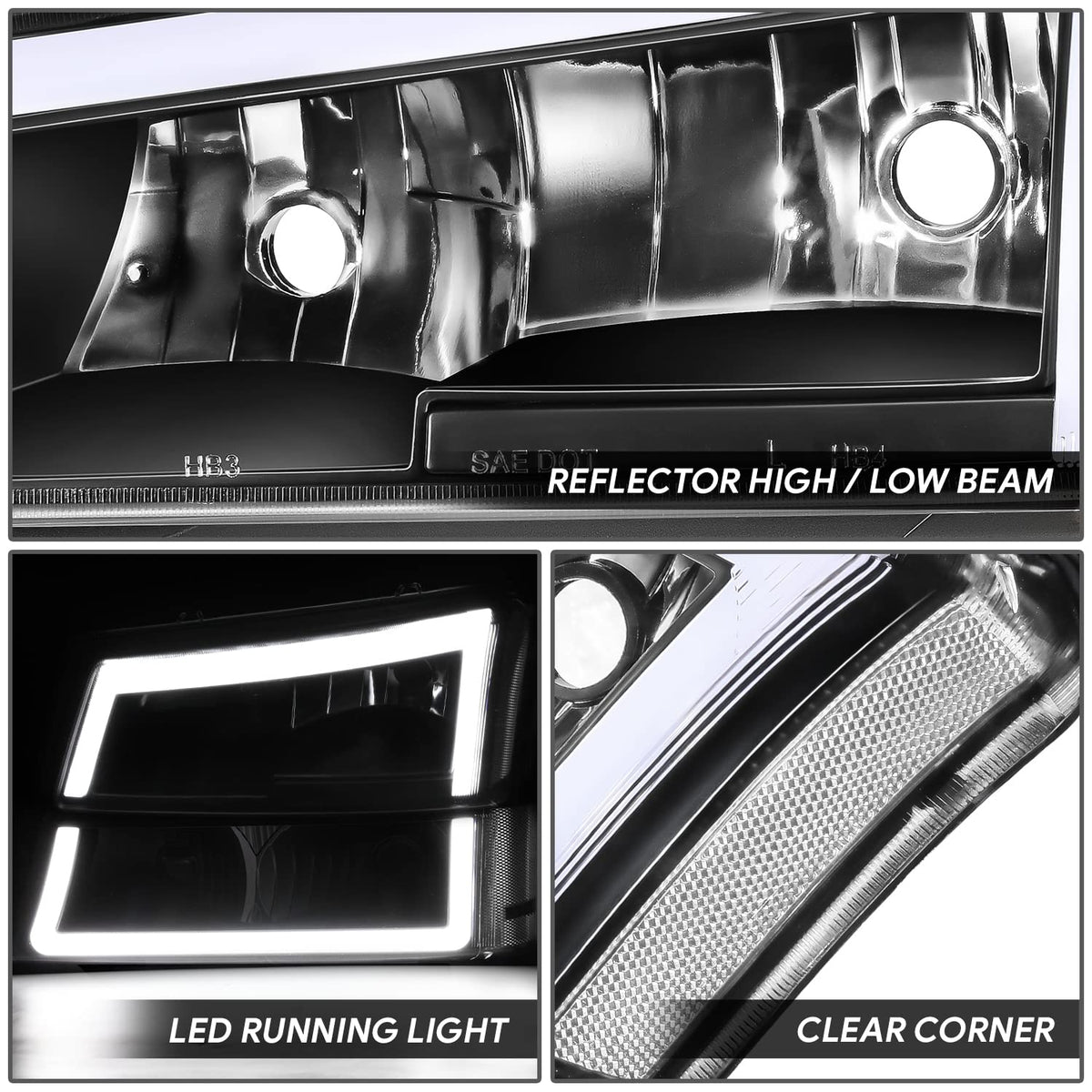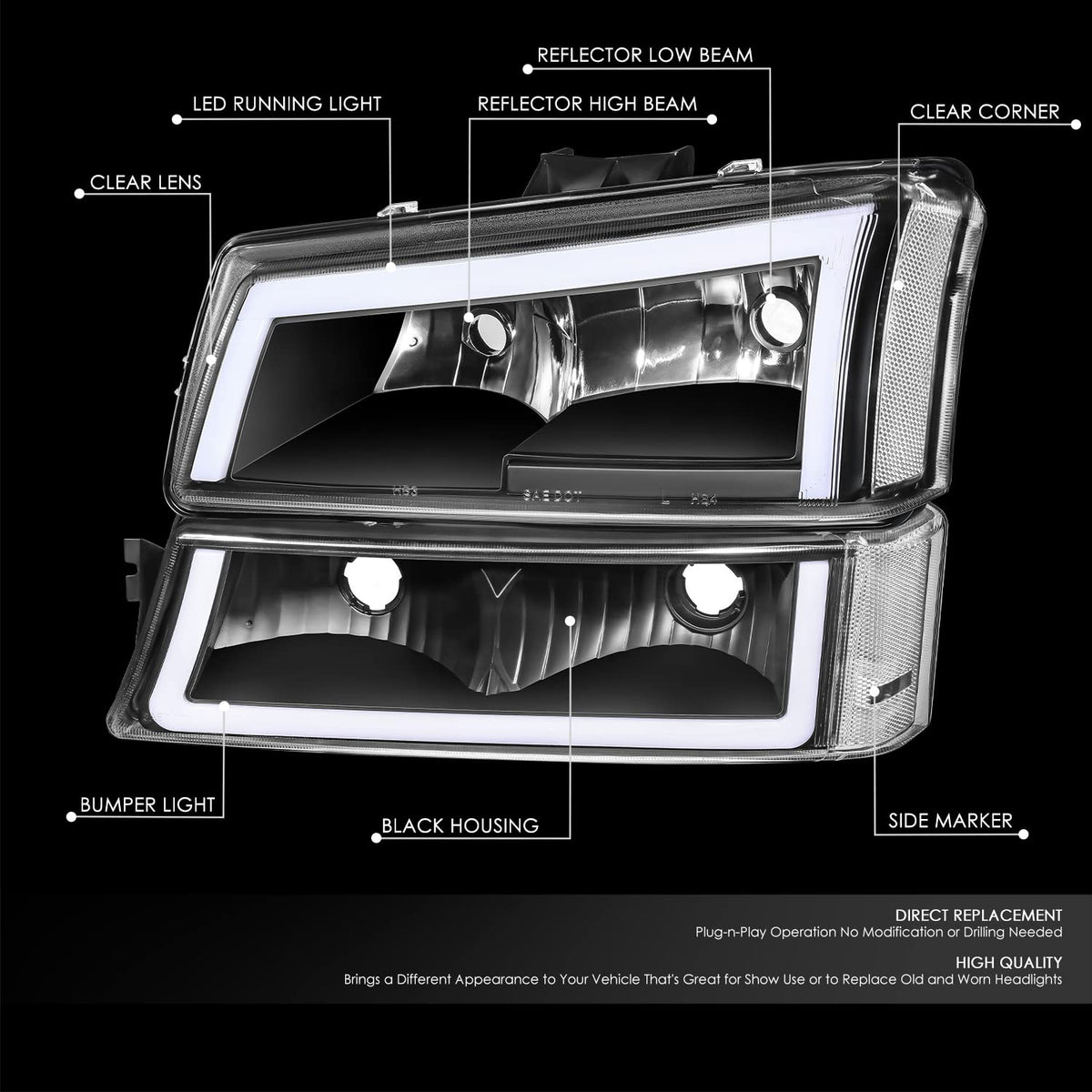 Dna Motoring Hl-Lb5-Csil03-Bk-Cl1 Pair Of Led Drl Headlights W/Parking Turn Signal Compatible With 03-06 Avalanche 1500 2500 / S