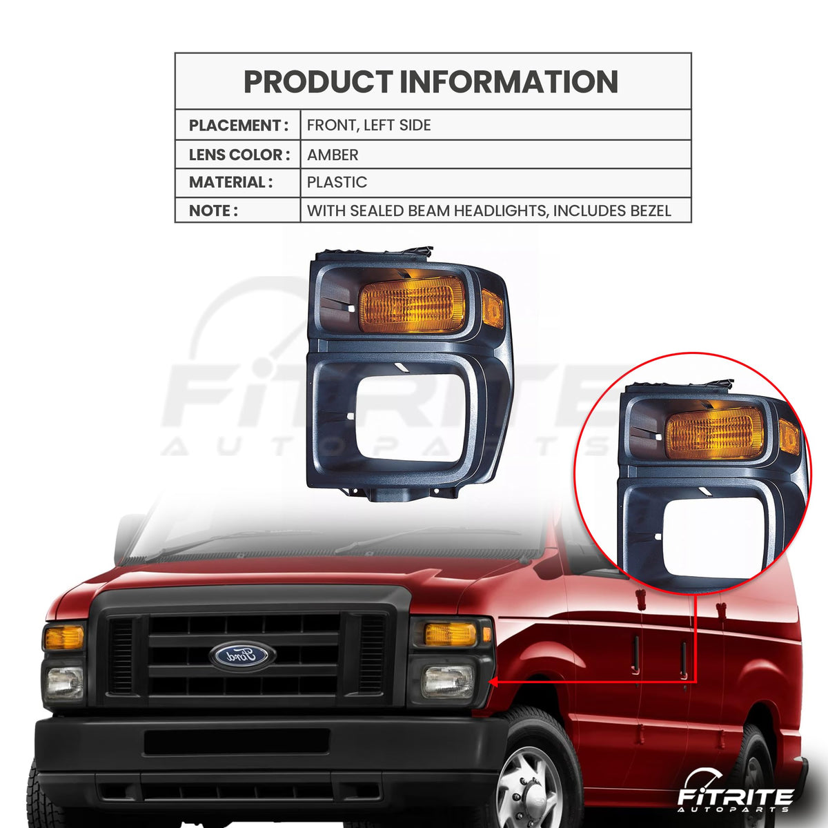 Fitrite Auto Parts New Front Left Driver Side Parking Light For 2008-2014 Ford Econoline Van, Lens And Housing, With Sealed Beam Head Lights Fo2524103 8C2Z13201B