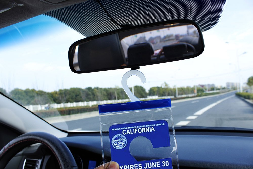 Q: How does the large hook work on the placard holder?A: The holder features a built-in large plastic hook that fits multiple car rearview mirrors, allowing for easy attachment and removal without causing damage.