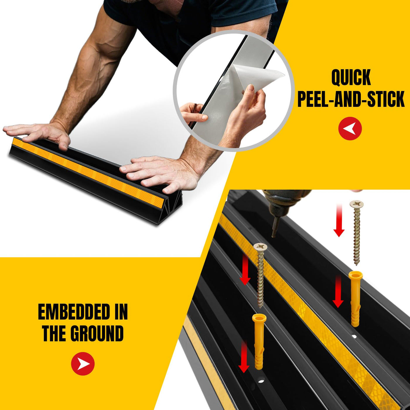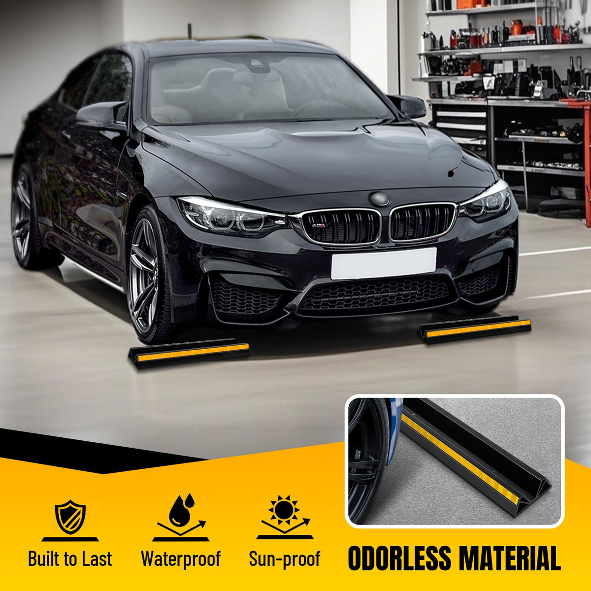 HOXWELL 2 Pcs Parking Car Wheel Stopper for Garage with 2 Installation Methods, Heavy Duty Garage Tire Stops with Reflective Tapes, Car Parking Aids for Garage, Easy to Install