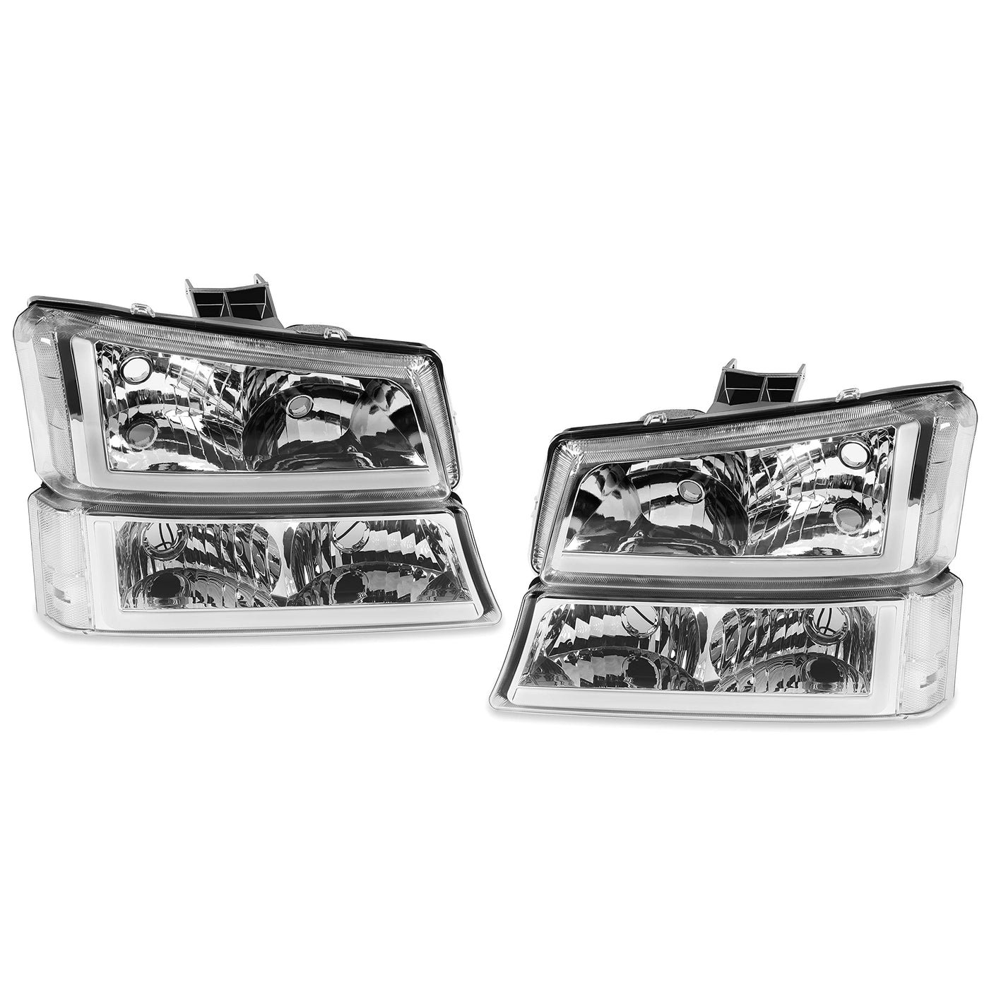 Fitment: Compatible With 2003 2004 2005 2006 Chevy Avalanche 1500 2500 (Fits Models Without Cladding Only); 2003 2004 2005 2006 Chevy Silverado 1500 2500 3500 & Hd Models; 2007 Chevy Silverado 1500 2500 3500 & Hd Classic Models (Fits Models With Halogen Headlights Only).Excellent Performance: Led Tube Bar Headlights Are Essential Parts Of Your Car. They Can Greatly Enhance The Appearance Of Your Vehicle With A Unique Style. What’S More, You Can Clearly See The Road Ahead With Your Headlights Whether In Night Or Bad Weather.Colour: Clear Lens & Chrome Housing. Premium Quality: Made From Polycarbonate With High Impact Strength And Good Dimensional Stability, Has A Long Working Life In Outdoor Condition. Package Included: 1 X Pair Of Headlights & 1 X Pair Of Bumper Parking Lights (Left & Right). Ideal Choice For Replacing Old Or Worn Headlights. Note: Wiring Harness Is Not Included. Previous Wiring Harness May Be Required For Installation. Installation Mode: Direct Bolt-On. No Need For Modification. Professional Installation Is Highly Recommended.