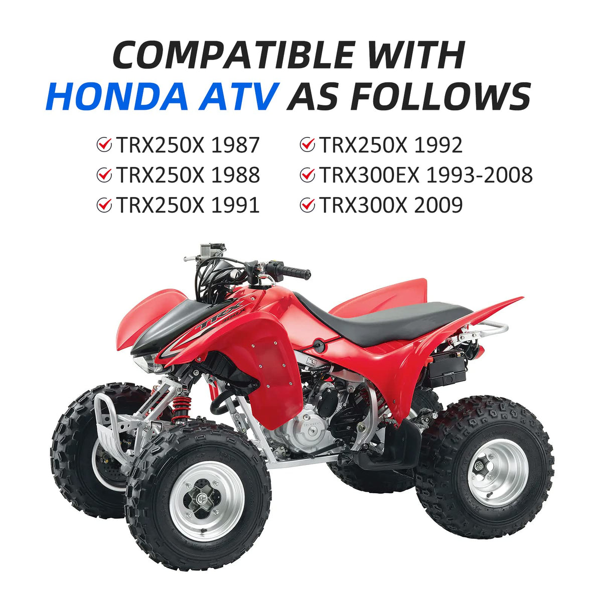Q: What models of Honda ATVs are compatible with the M MATI Rear Brake Caliper?A: The M MATI Rear Brake Caliper is compatible with several Honda ATV models, including the TRX250X from 1987 to 1992 and the TRX300EX from 1993 to 2008, as well as the TRX300X in 2009.