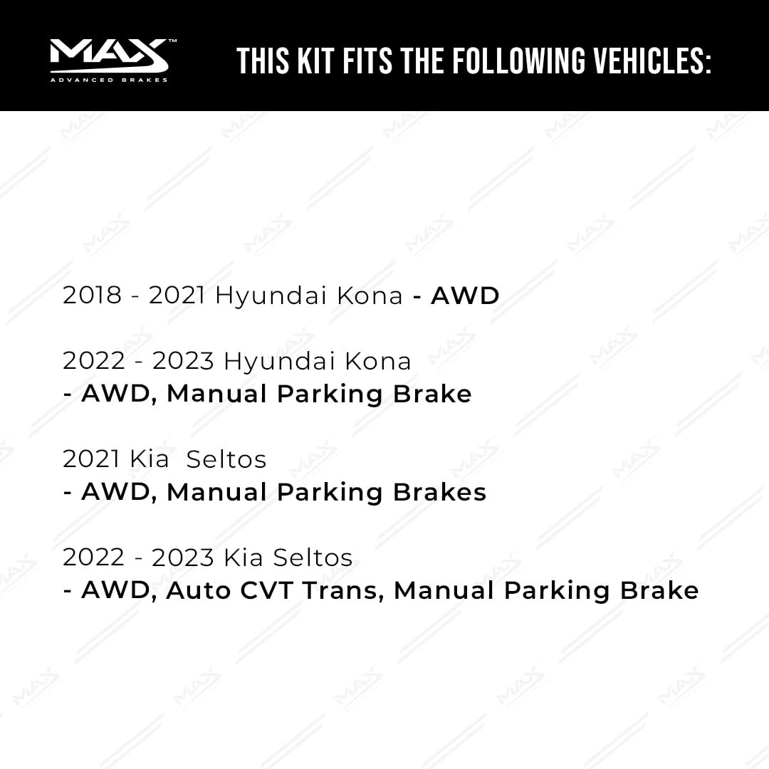 Max Advanced Brakes Front & Rear Brake Kit Compatible With 2018 2019 2020-2023 Hyundai Kona Awd Manual Parking Brakes Replacemen