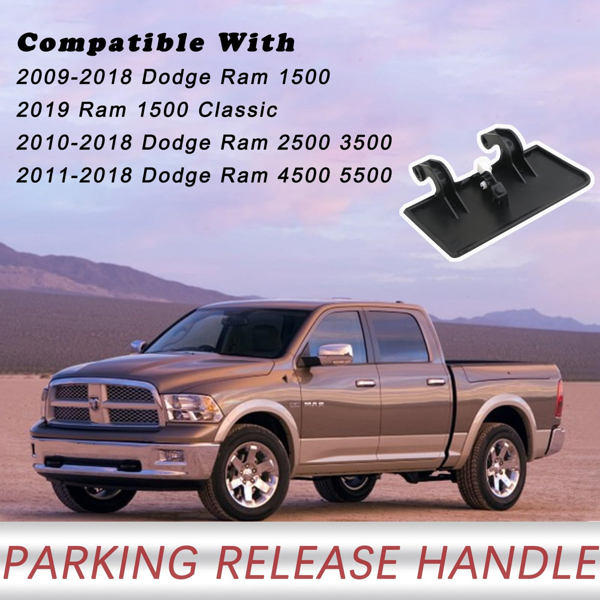 Q: What vehicles are compatible with the TQPONLY 74401 Parking Brake Release Handle?A: The TQPONLY 74401 Parking Brake Release Handle is compatible with the following vehicles: 2009-2010 Dodge Ram 1500, 2010 Dodge Ram 2500, 2010 Dodge Ram 3500, and the 2011-2018 Ram 1500, 2500, 3500, 4500, and 5500 models, as well as the 2019 Ram 1500 Classic.
