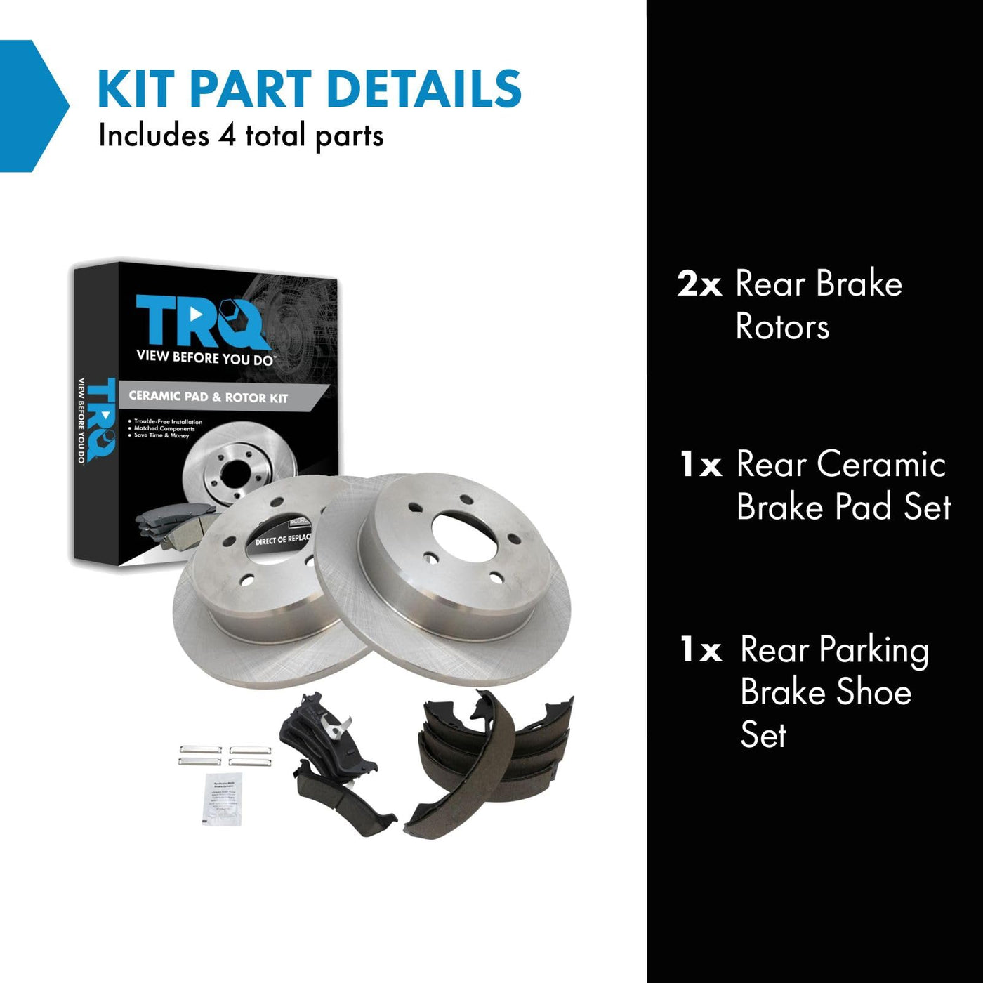 Trq Rear Brake Pad & Rotor Kit Brake Pads Brake Rotor Parking Brake Shoe Set Ceramic Compatible With 2000-2001 Ford Explorer 200