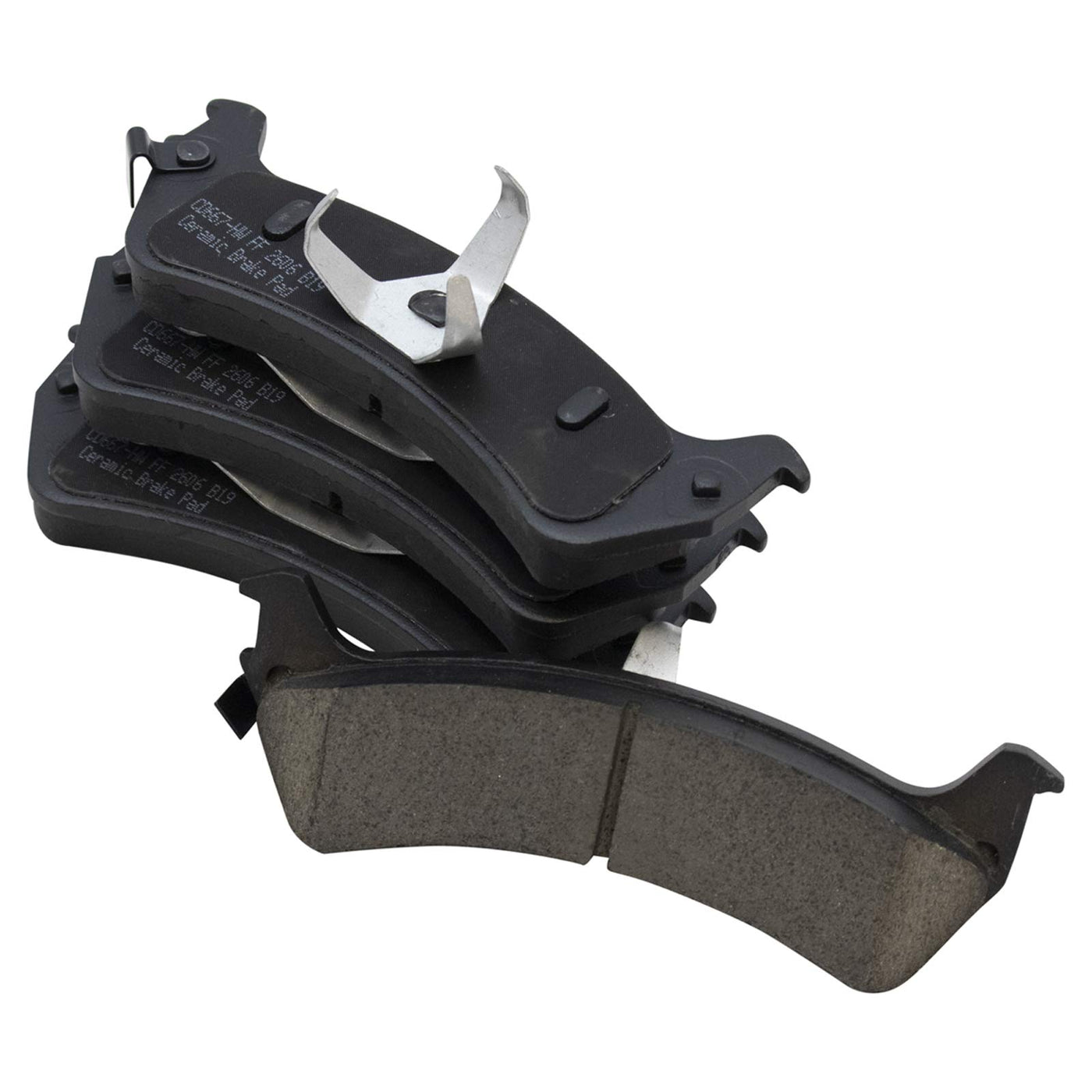 Ceramic Brake Pad & Rotor KitKit Includes(1) Rear Ceramic Brake Pad Set(1) Rear Parking Brake Shoe Set(2) Rear Brake RotorsFitmentCompatible with: 2000-01 Ford Explorer Rear with Parking ShoesCompatible with: 2001-02 Ford Explorer Sport Rear with Phenolic Piston Calipers with Parking ShoesCompatible with: 2000-01 Mercury Mountaineer Rear with Parking ShoesProduct AttributesBrake Pad Friction Material: CeramicProduct Features Positive Molded - Less dust resulting in clean wheels G3000 Casting Alloy - Reduced noise and improved wear resistance Application Specific Design - Extended service life, no modificationsItem DetailsTRQ brake kits are designed to restore your brake system to like-new performance. TRQ brake pads are positive molded, thermal scorched, chamfered, and utilize a multi-layer shim for enhanced performance and service life. TRQ rotors have a non-directional finish that reduces the break-in period for new rotors as well as reducing vibrations throughout the rotors lifecycle. All products are fit and road-tested in our Massachusetts R&D facility to ensure we deliver on our promise of Trusted Reliable Quality.Reference NumbersAimco: 54032Bendix: PRT5052DuraGo: BR54032Ford: 1L2Z2200CA, 2L2Z2200BA, F5TZ2200A, XL2Z2200AAHollander: 533-02294Mercury: F5TZ2200A, XL2Z2200AARaybestos Brakes: 66565, 66565FZN, 66565P, 66565R, 766PG, EHT667HWagner Brake: Z766Wagner: BD125463