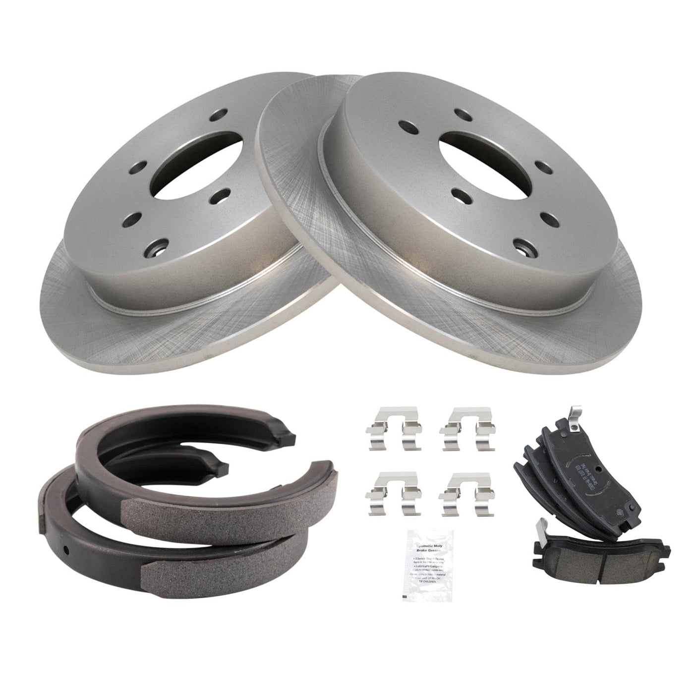 Trq Rear Brake Pad & Rotor Kit Brake Pads Brake Rotor Parking Brake Shoe Set Ceramic Compatible With 2002-2004 Oldsmobile Silhou