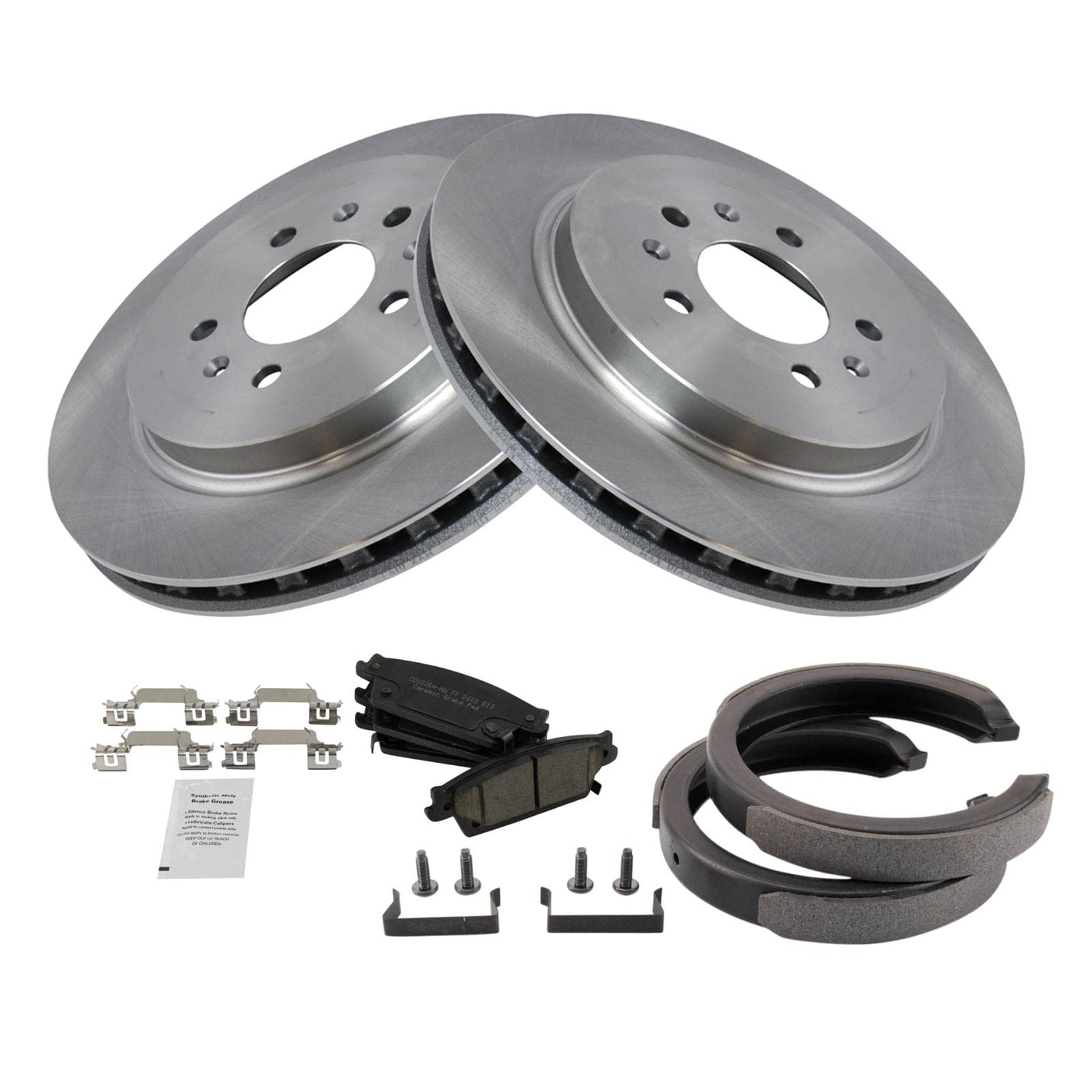 Trq Rear Brake Pad & Rotor Kit Brake Pads Brake Rotor Parking Brake Shoe Set Ceramic Compatible With 2005-2008 Cadillac Sts