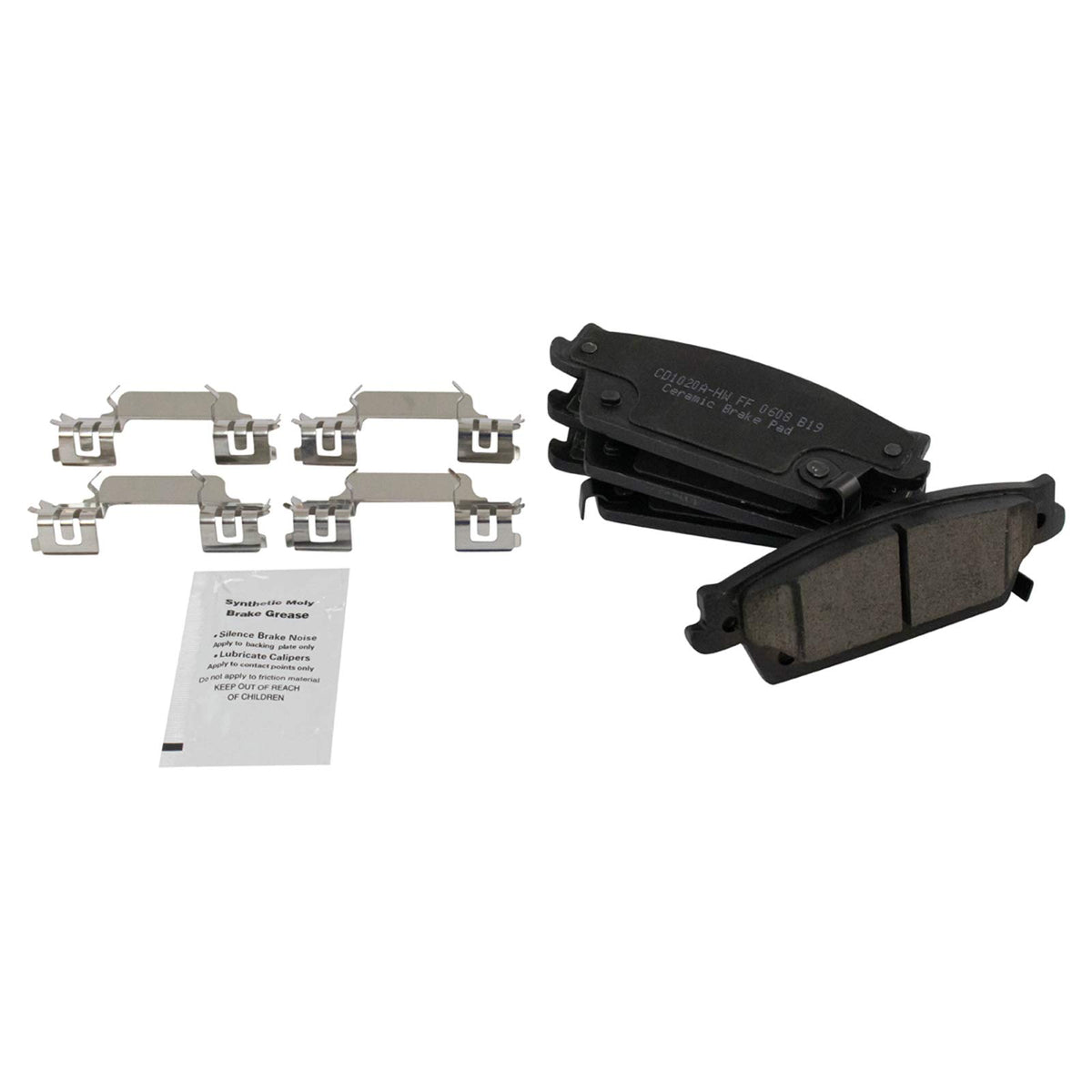 Ceramic Brake Pad & Rotor KitKit Includes(1) Rear Ceramic Brake Pad Set(1) Rear Parking Brake Shoe Set(2) Rear Brake RotorsFitmentCompatible with: 2005-07 Cadillac STS Rear with RPO Code JE5 4 Wheel ABS Brakes without RPO Code UJ1 Brake Warning Indicator with Parking ShoesCompatible with: 2005-07 Cadillac STS Rear with RPO Code JE5 4 Wheel ABS Brakes with Parking ShoesCompatible with: 2008 Cadillac STS V Rear with RPO Code JE5 4 Wheel ABS Brakes without RPO Code UJ1 Brake Warning Indicator with Parking ShoesCompatible with: 2008 Cadillac STS Base Model Rear with RPO Code JE5 4 Wheel ABS Brakes without RPO Code UJ1 Brake Warning Indicator with Parking ShoesCompatible with: 2008 Cadillac STS V Rear with RPO Code JE5 4 Wheel ABS Brakes with Parking ShoesCompatible with: 2008 Cadillac STS Base Model Rear with RPO Code JE5 4 Wheel ABS Brakes with Parking ShoesProduct AttributesBrake Pad Friction Material: CeramicProduct Features Positive Molded - Less dust resulting in clean wheels G3000 Casting Alloy - Reduced noise and improved wear resistance Application Specific Design - Extended service life, no modificationsItem DetailsTRQ brake kits are designed to restore your brake system to like-new performance. TRQ brake pads are positive molded, thermal scorched, chamfered, and utilize a multi-layer shim for enhanced performance and service life. TRQ rotors have a non-directional finish that reduces the break-in period for new rotors as well as reducing vibrations throughout the rotors lifecycle. All products are fit and road-tested in our Massachusetts R&D facility to ensure we deliver on our promise of Trusted Reliable Quality.Reference NumbersAimco: 55113Autopart International: 1414-315219Bendix: PRT5664, PRT5902DuraGo: BR900372Hollander: 533-02478Raybestos Brakes: 580364, 580364FZN, 580364P, 580364R, 580713, 580713FZN, 580713P, 580713PER, 580713R, 770PG, EHT1020AHWagner Brake: Z770Wagner: BD126284