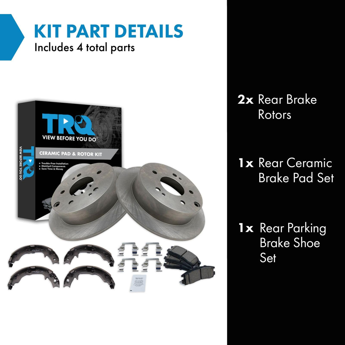 Trq Rear Brake Pad & Rotor Kit Brake Pads Brake Rotor Parking Brake Shoe Set Ceramic Compatible With 2006-2012 Mitsubishi Eclips