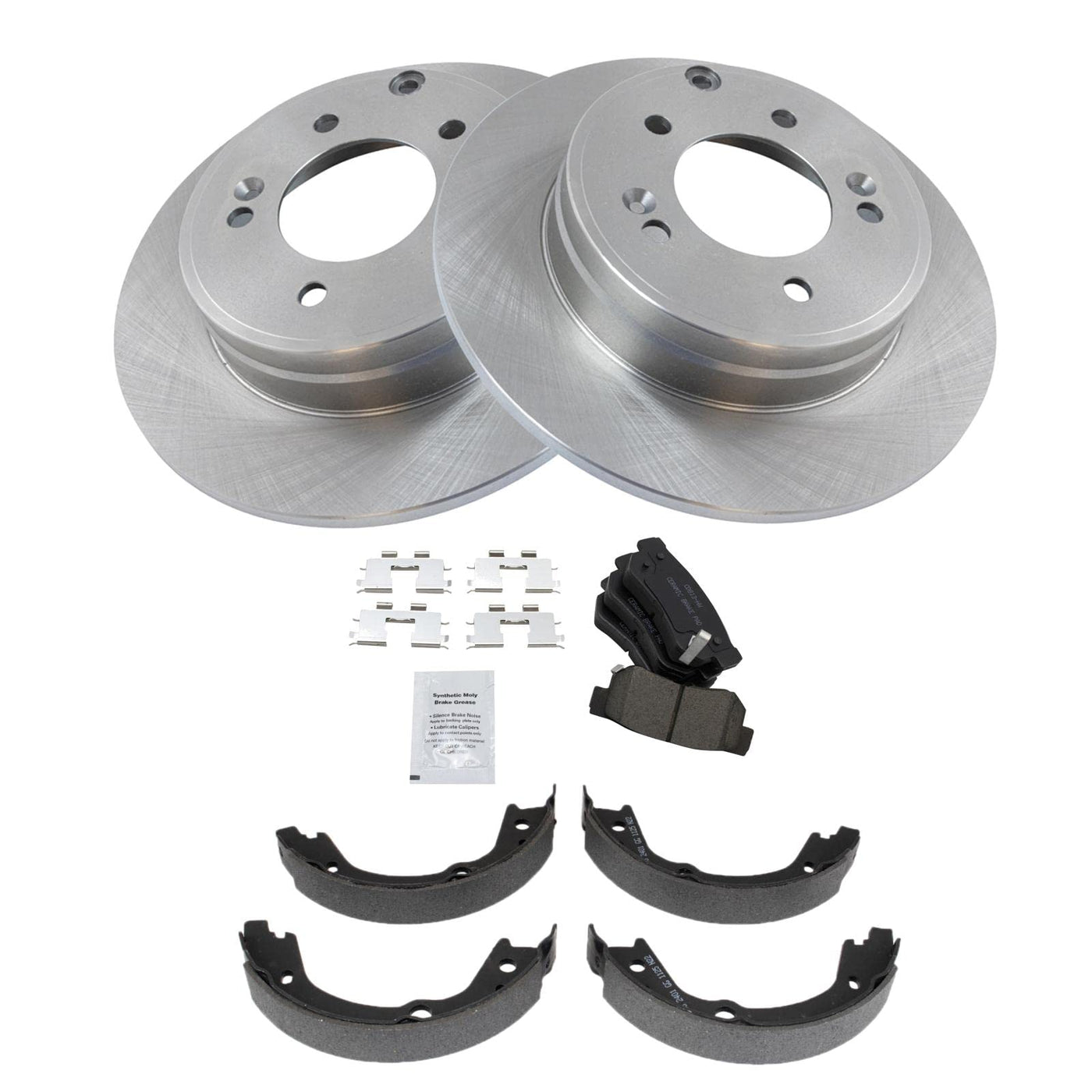 Trq Rear Brake Pad & Rotor Kit Brake Pads Brake Rotor Parking Brake Shoe Set Ceramic Compatible With 2007-2008 Hyundai Sonata