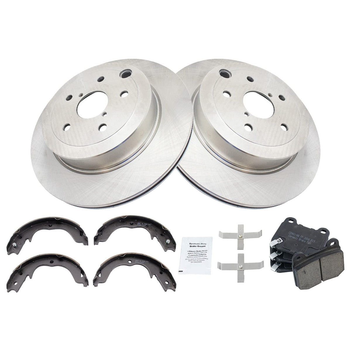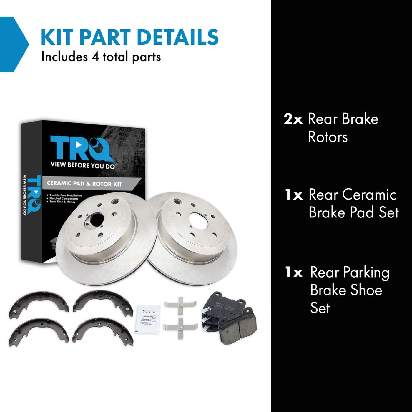 Trq Rear Brake Pad & Rotor Kit Brake Pads Brake Rotor Parking Brake Shoe Set Ceramic Compatible With 2008-2013 Subaru Impreza