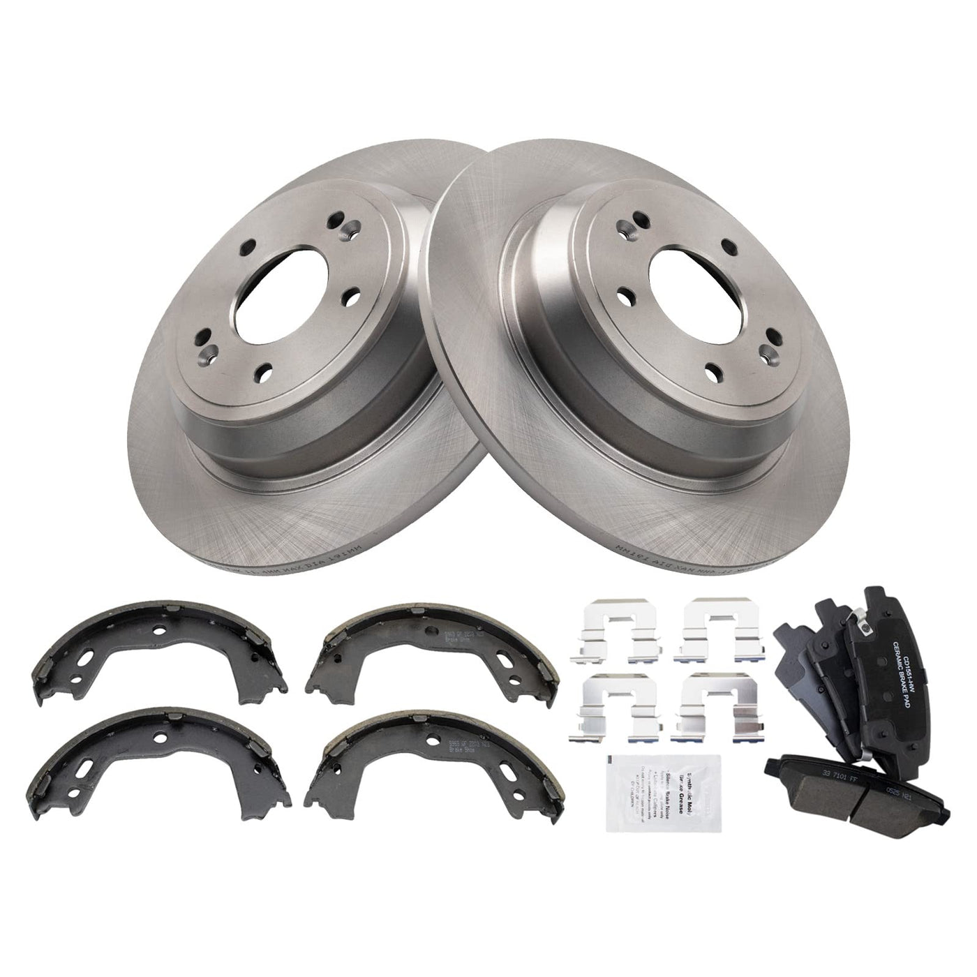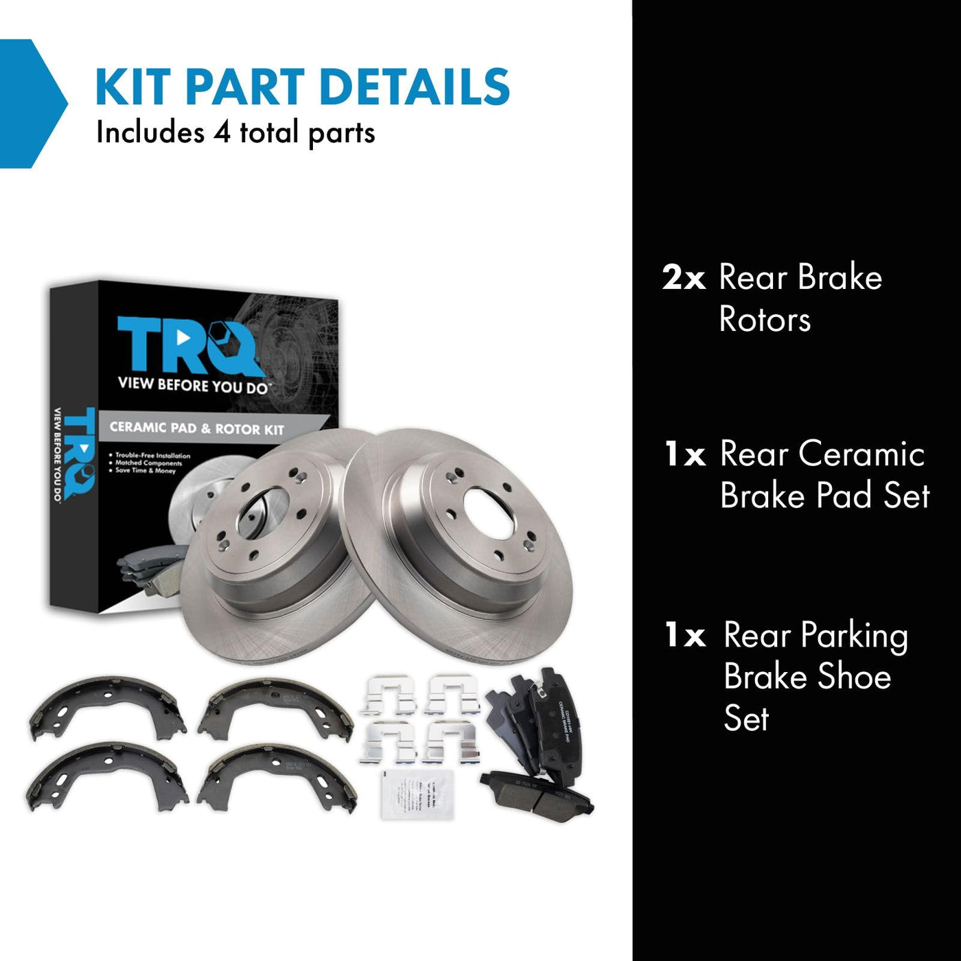 Trq Rear Brake Pad & Rotor Kit Brake Pads Brake Rotor Parking Brake Shoe Set Ceramic Compatible With 2010-2014 Hyundai Genesis