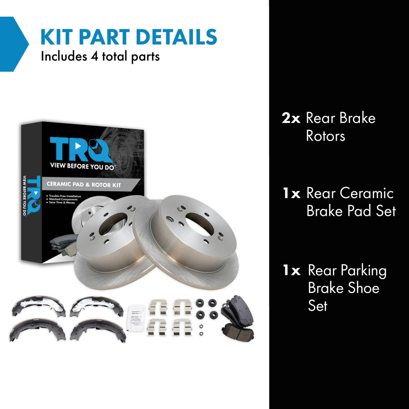 Trq Rear Brake Pad & Rotor Kit Brake Pads Brake Rotor Parking Brake Shoe Set Ceramic Compatible With 2010-2015 Hyundai Tucson 20