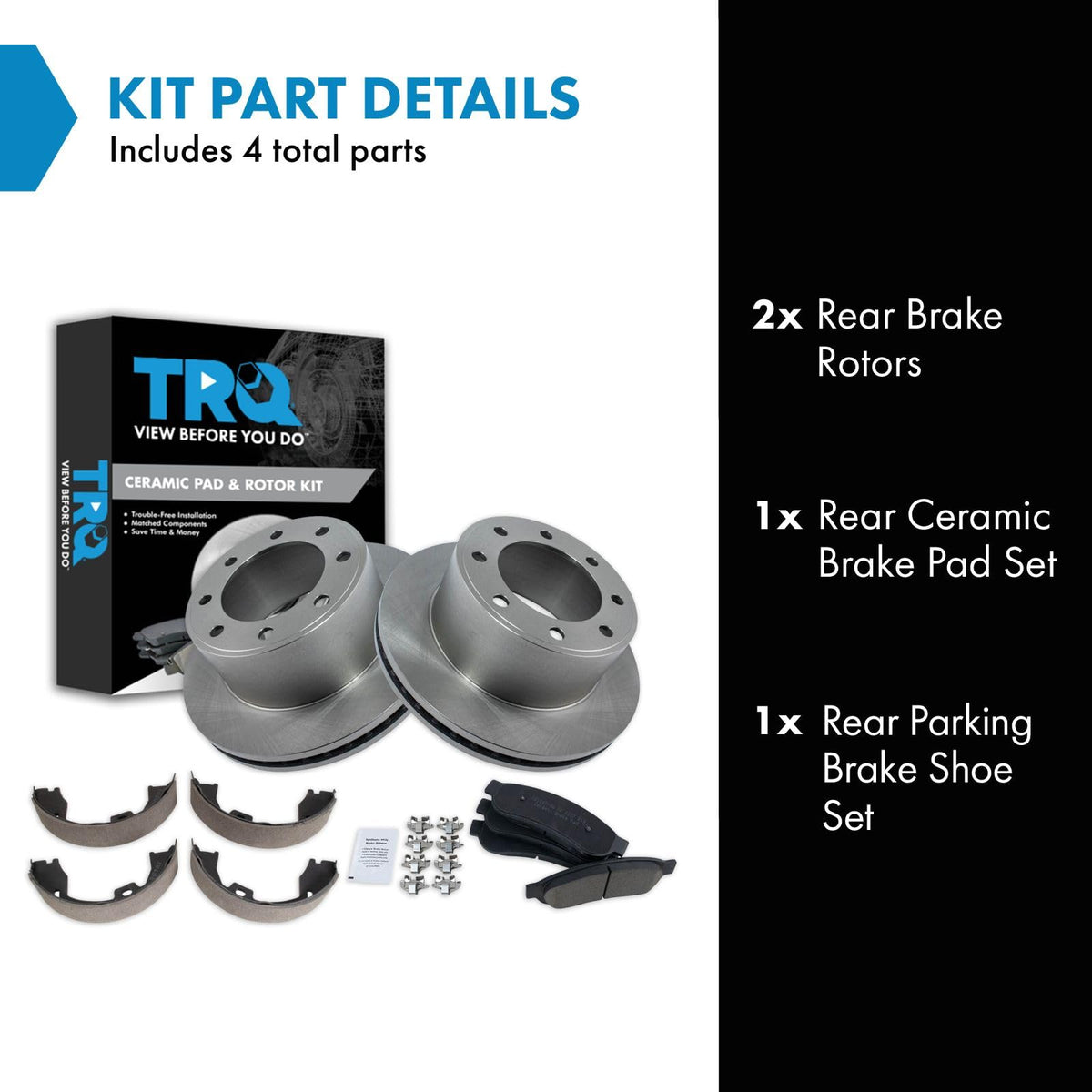 Trq Rear Brake Pad & Rotor Kit Brake Pads Brake Rotor Parking Brake Shoe Set Ceramic Compatible With 2011-2012 Ford F-250 Super
