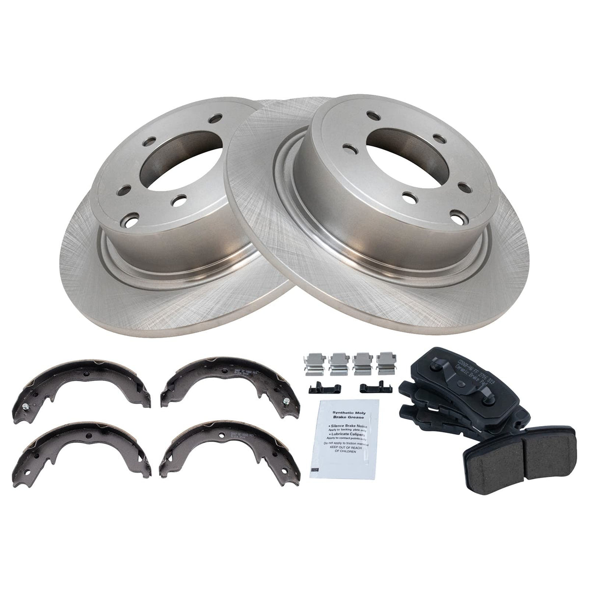Trq Rear Brake Pad & Rotor Kit Brake Pads Brake Rotor Parking Brake Shoe Set Ceramic Compatible With 2011-2012 Mitsubishi Outlan