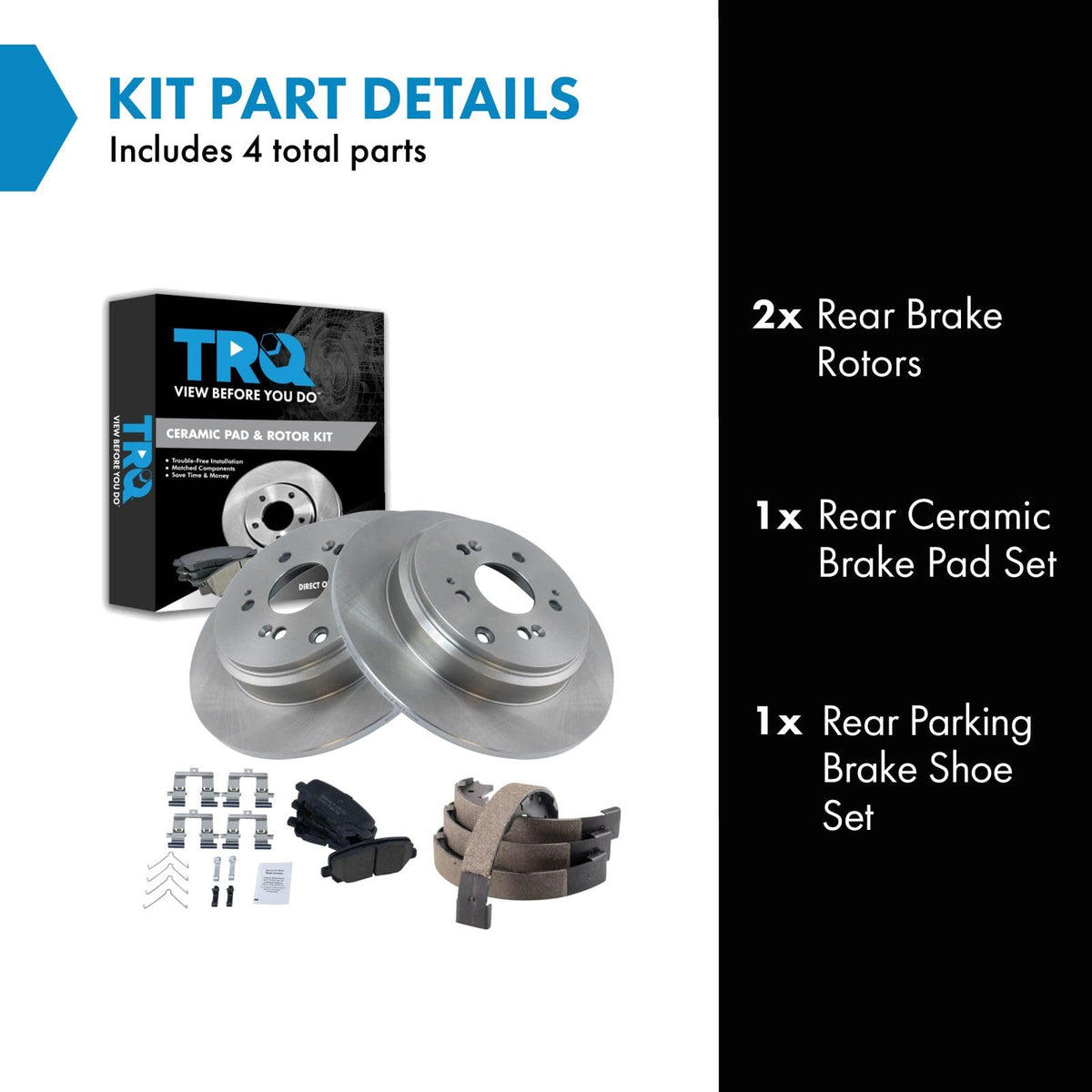 Trq Rear Brake Pad & Rotor Kit Brake Pads Brake Rotor Parking Brake Shoe Set Ceramic Compatible With 2011-2017 Honda Odyssey