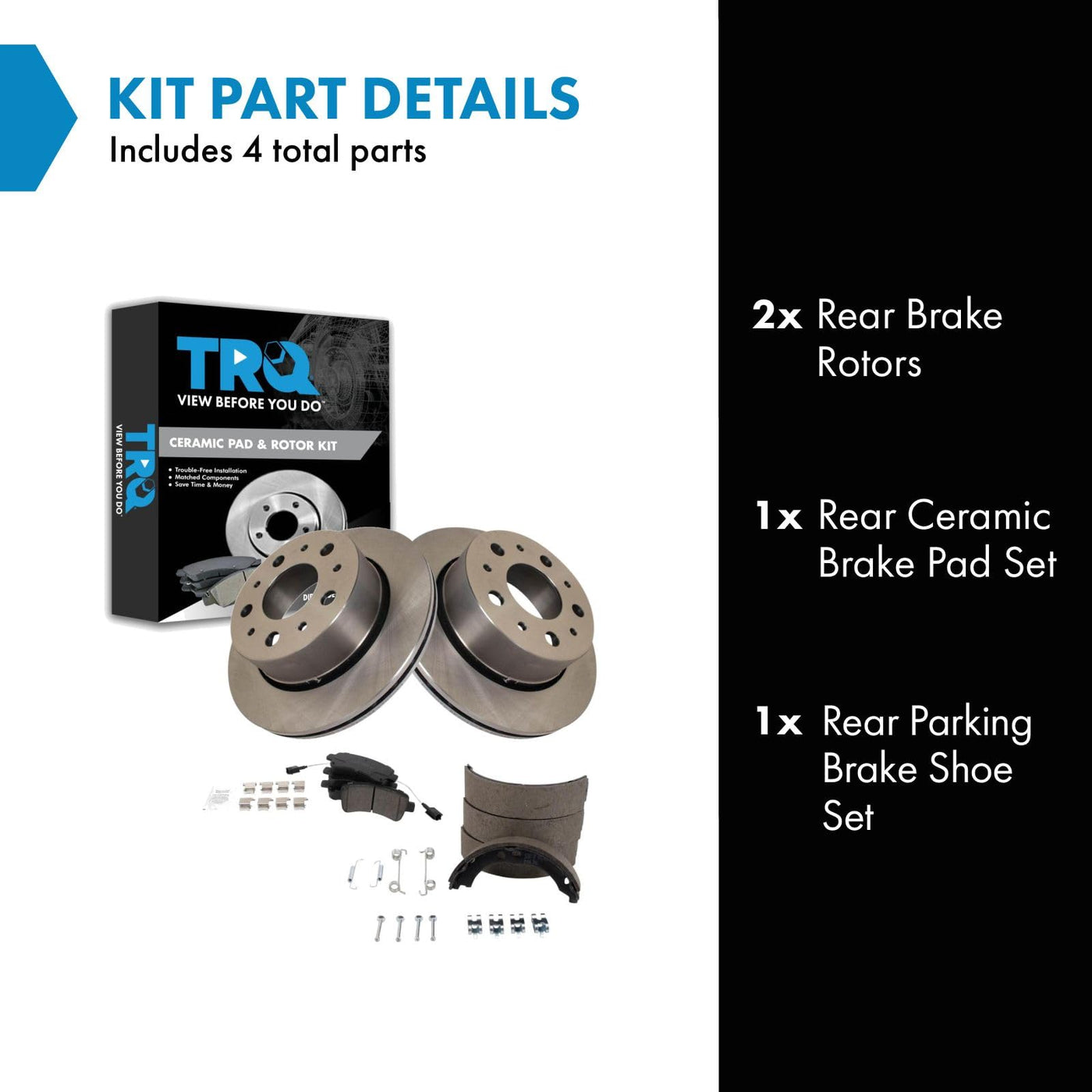 Trq Rear Brake Pad & Rotor Kit Brake Pads Brake Rotor Parking Brake Shoe Set Ceramic Compatible With 2014-2021 Ram Promaster 150
