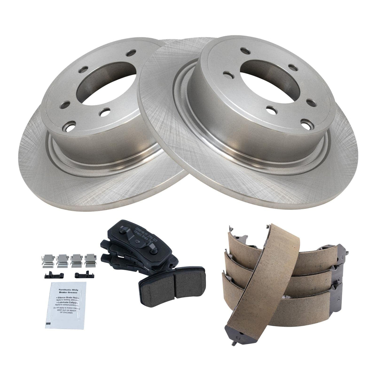 Trq Rear Brake Pad & Rotor Kit Brake Pads Brake Rotor Parking Brake Shoe Set Ceramic Compatible With 2014 Dodge Avenger