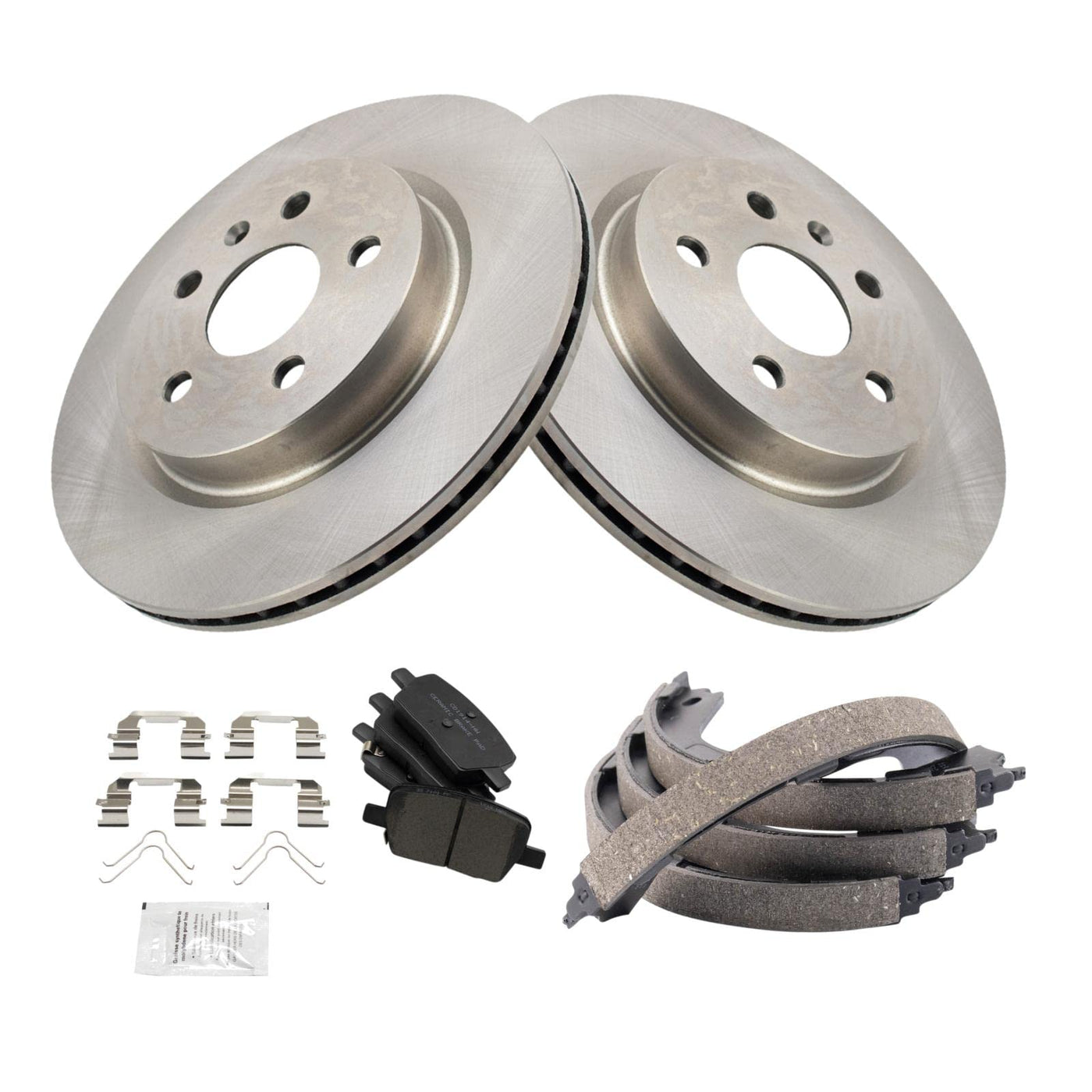 Trq Rear Brake Pad & Rotor Kit Brake Pads Brake Rotor Parking Brake Shoe Set Ceramic Compatible With 2016-2019 Chevrolet Camaro
