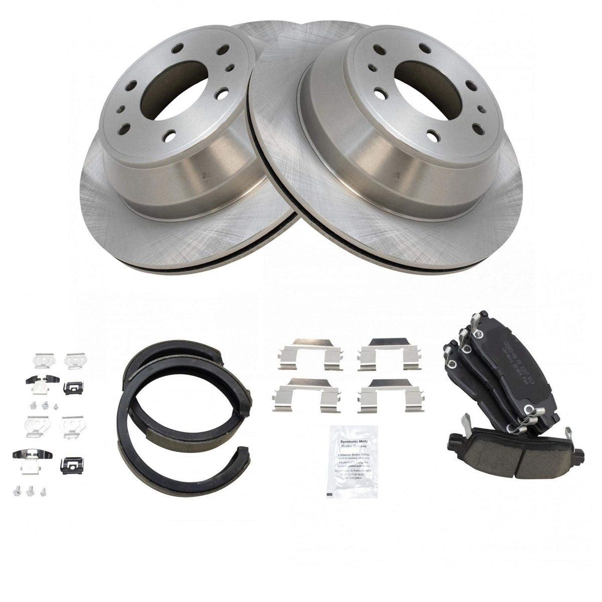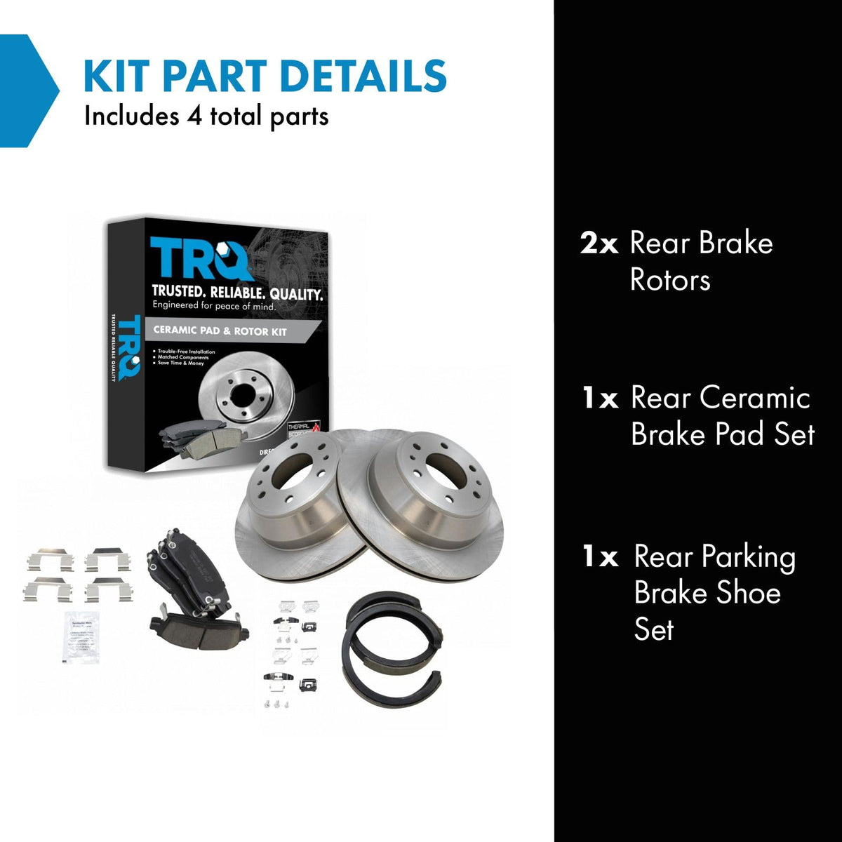 Trq Rear Brake Pad & Rotor Kit Brake Pads Brake Rotor Parking Brake Shoe Set Ceramic Compatible With 2018-2019 Dodge Durango 201