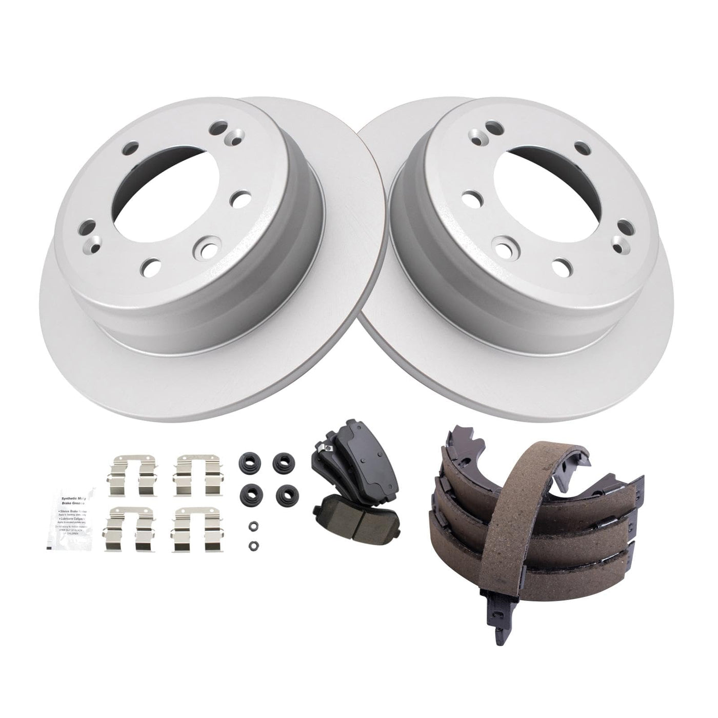 Trq Rear Brake Pad & Rotor Kit Brake Pads Brake Rotor Parking Brake Shoe Set Ceramic Premium G-Coated Compatible With 2010-2015