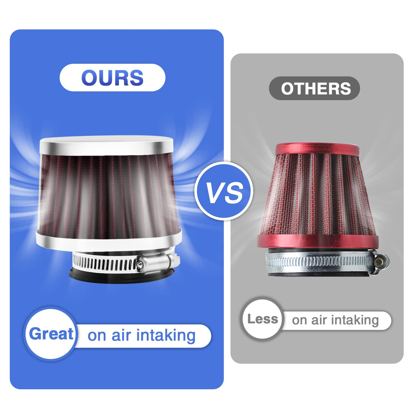 Q: How does this air filter improve engine performance?A: The high-performance design of this air filter helps to filter out impurities, dust, and debris from the air intake, preventing them from entering the engine. This results in improved airflow, which enhances engine performance and longevity, ensuring smoother operation.