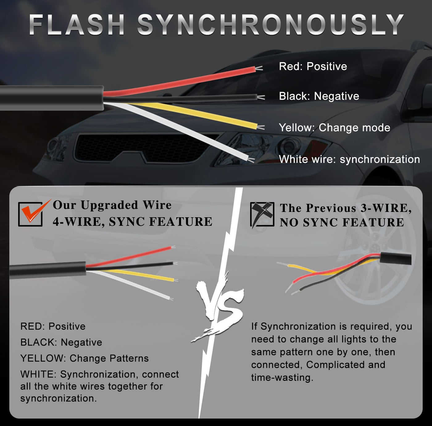 18 Different Flashing Patterns. Last Pattern Recall/Memory Function. Universal Fit All Vehicles With Dc 12V-24V- Truck, Suv, Jeep, 4X4, Atv, Construction Vehicles, Installed At The Front/Rear Bumper, Windshield, Side Markers, Headlight, Taillight, Fog Light Locations.