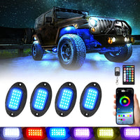 4 Pods Alloy Rgb Led Rock Lights For Atv Utv Rzr Suv Sxs Golf Cart Trucks Car, Metal Waterproof Multicolor Underglow Kit With Ap