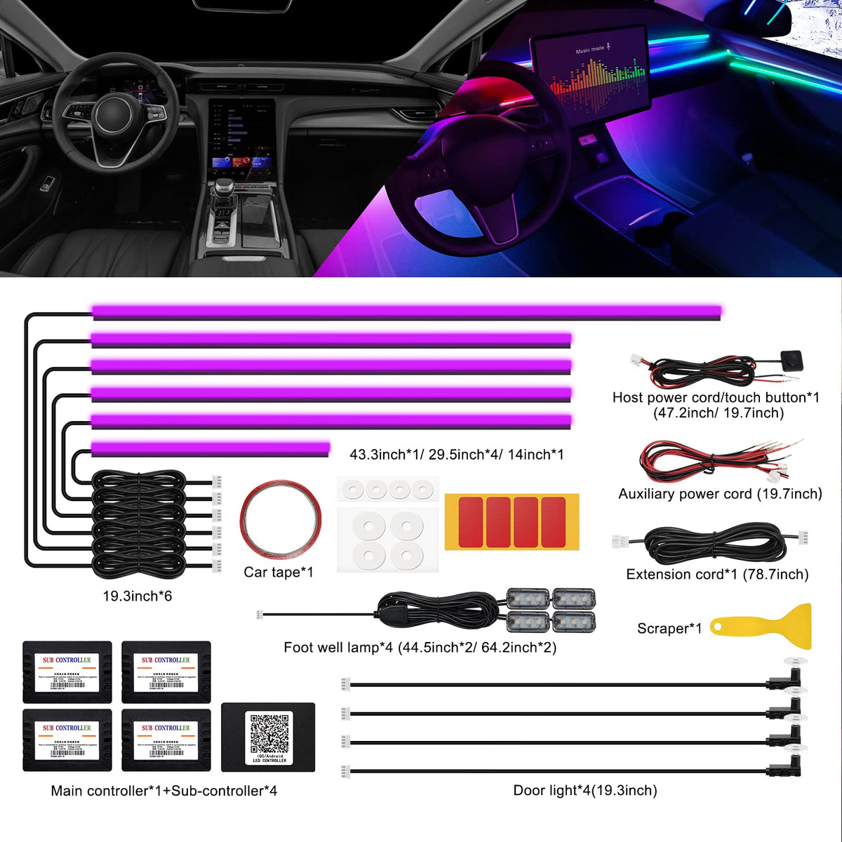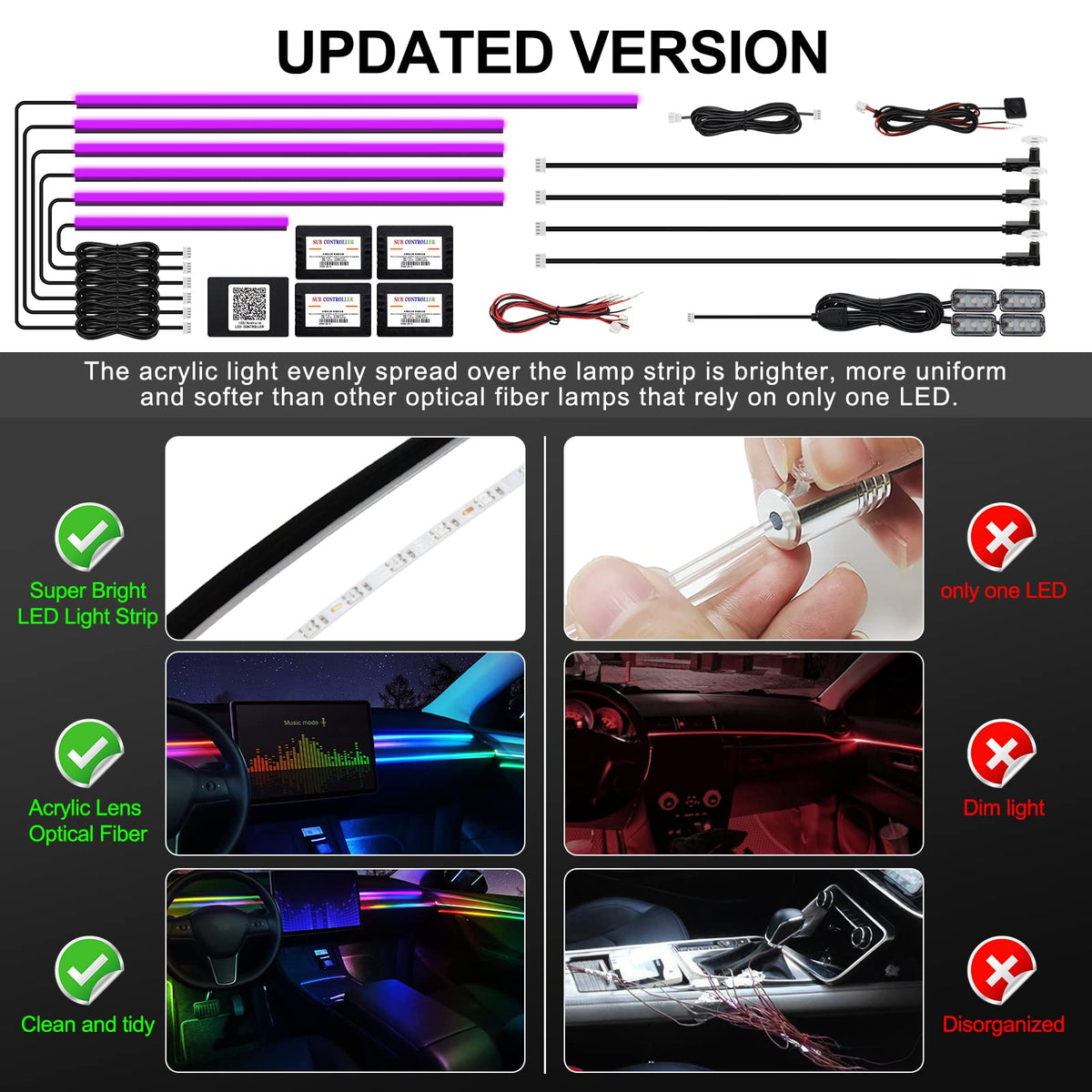 Acrylic Interior Car Led Strip Light With Wireless App, Rgb 14 In 1 With 175 Inches 593 Leds Fiber Optic Ambient Lighting Kits,